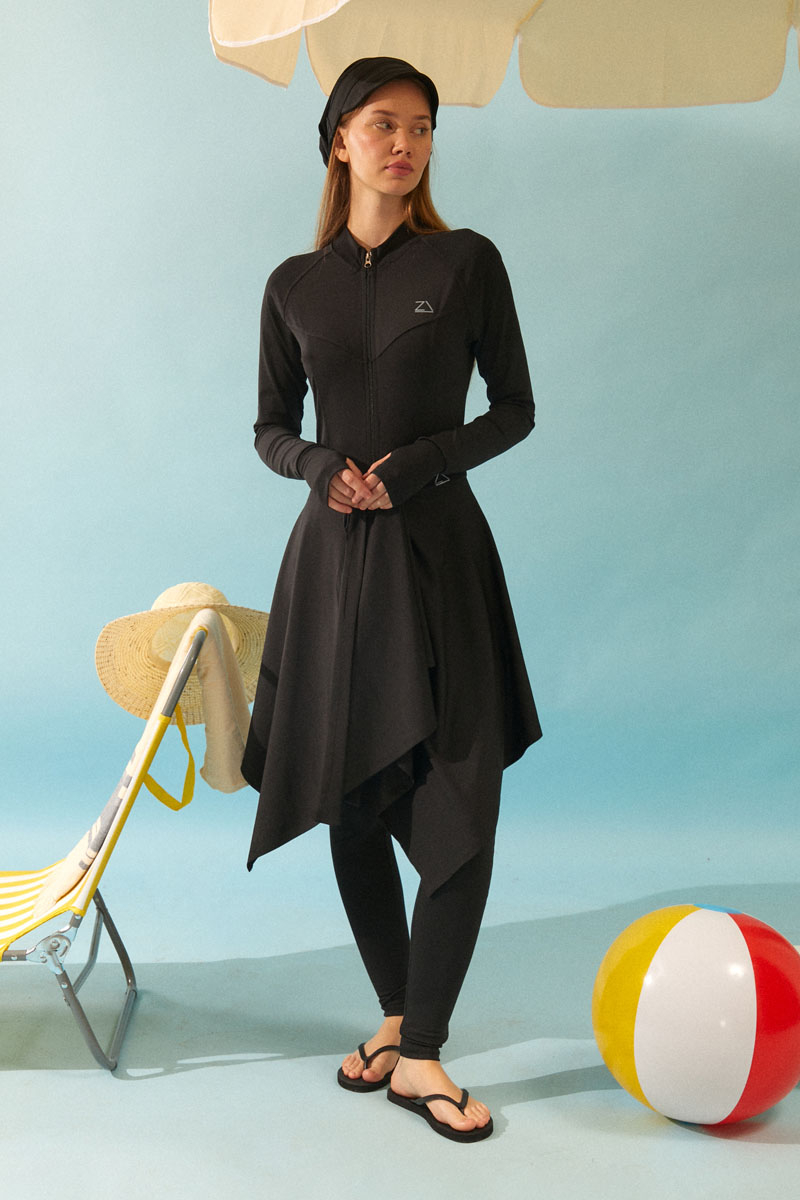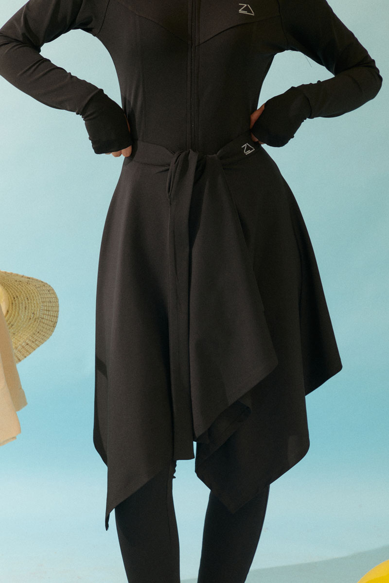 Bağlamalı Asimetrik Mayo Eteği Siyah, Dinamik asimetrik kesimi ve bel kısmındaki ayarlanabilir bağlama detayı sayesinde kişisel stilinizi yansıtma özgürlüğü sunar. İster sade bir mayoyla, ister desenli bir bikini üstüyle kombinleyin, her parçayla mükemmel uyum sağlayarak plajda ve havuz başında benzersiz bir şıklık yaratır. Mütevazı giyim tarzını benimseyenlerden, aktif plaj yaşamını sevenlere kadar herkese hitap eden bu etekle, yazın ve tatilin tadını stilinizden ödün vermeden çıkarın.
