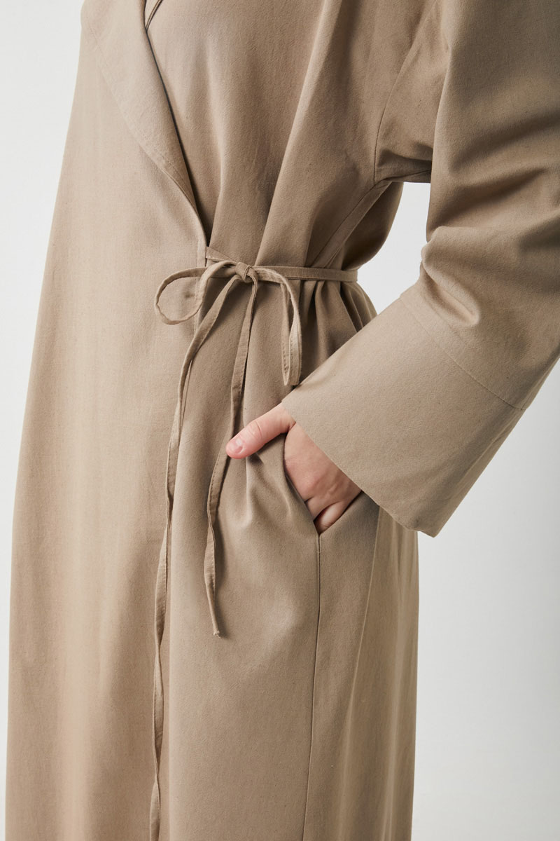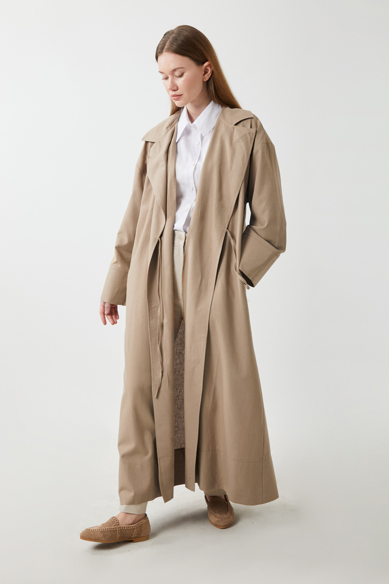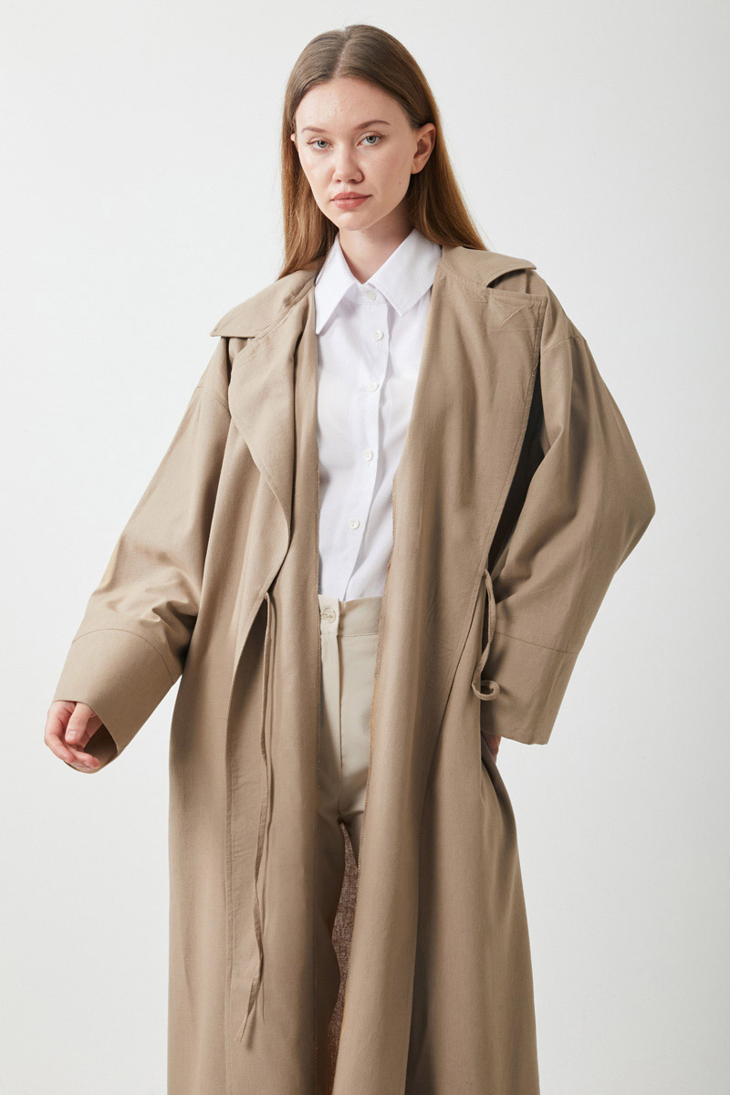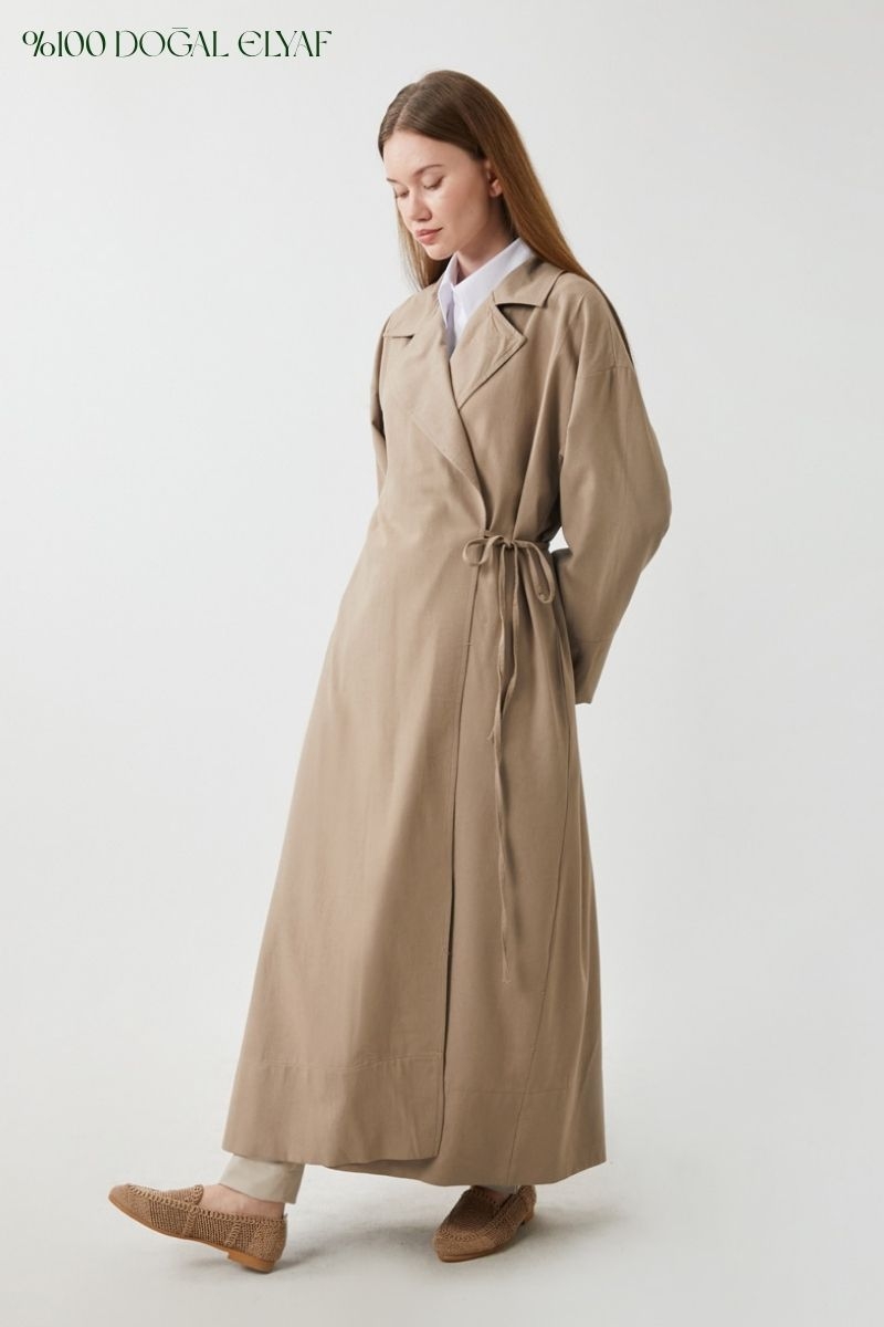 Bağlamalı Keten Trençkot Vizon. Ceket yakalıdır. Kruvaze kapamalıdır. Yandan bağlamalı ince kuşak detaylıdır. Yan ceplidir. Günlük kullanım ve özel günlerinizde tercih edebilirsiniz.