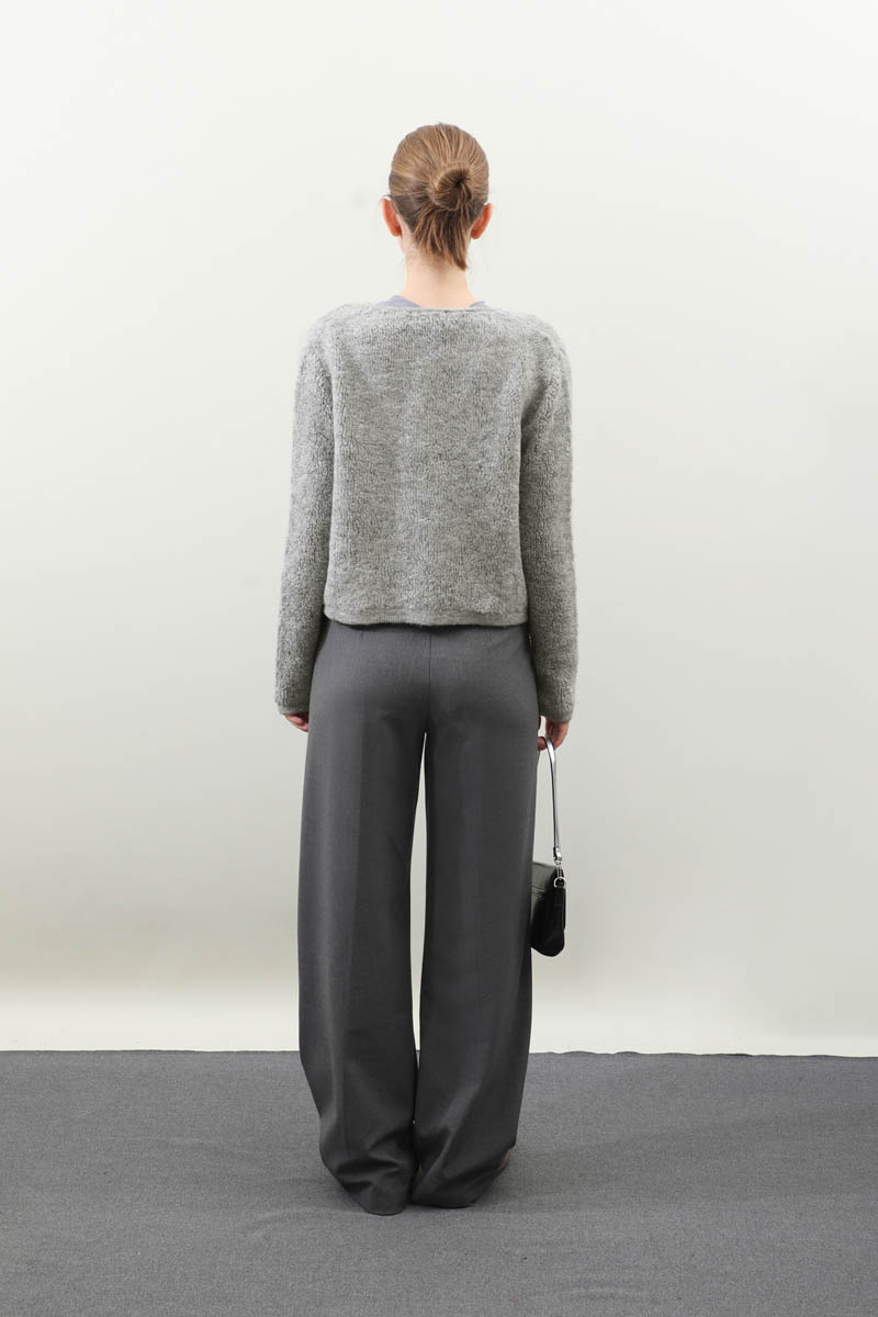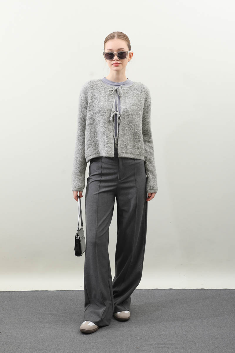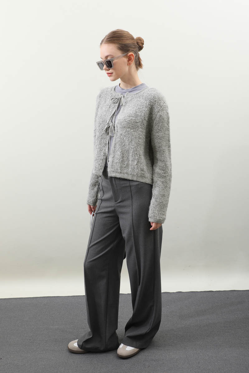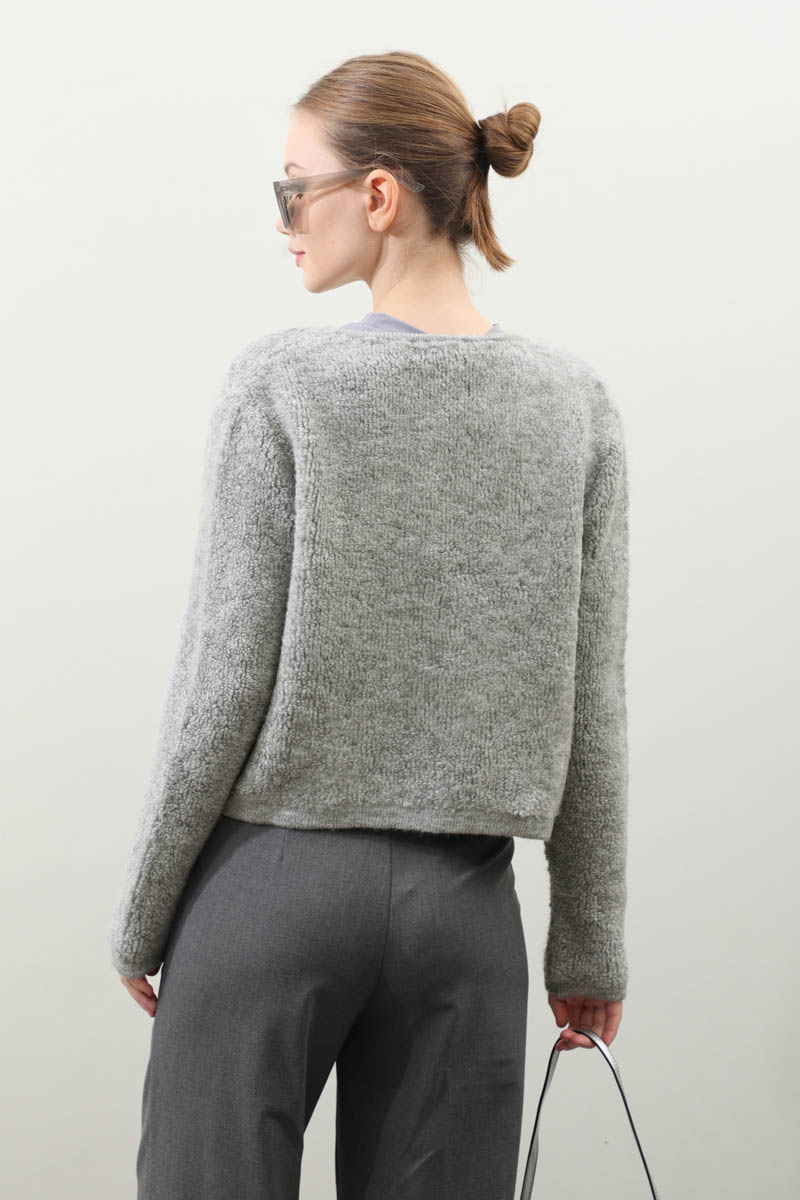 Bağlamalı Peluş Triko Kazak Gri. Bisiklet yakadır. önden bağcık bağlamalıdır, düşük omuzludur, maşet ve etek ucu kısa ribanalıdır, cepsizdir. Günlük kullanım ve özel günlerinizde tercih edebilirsiniz.