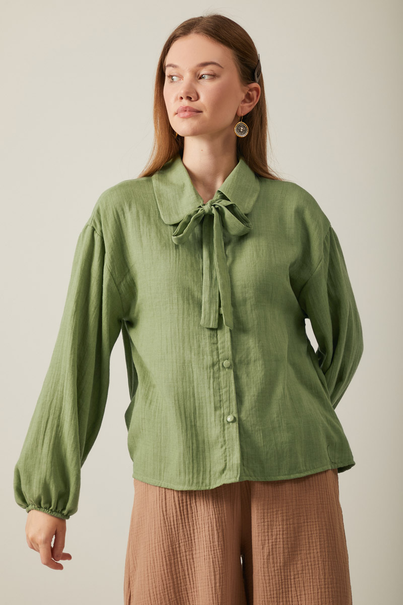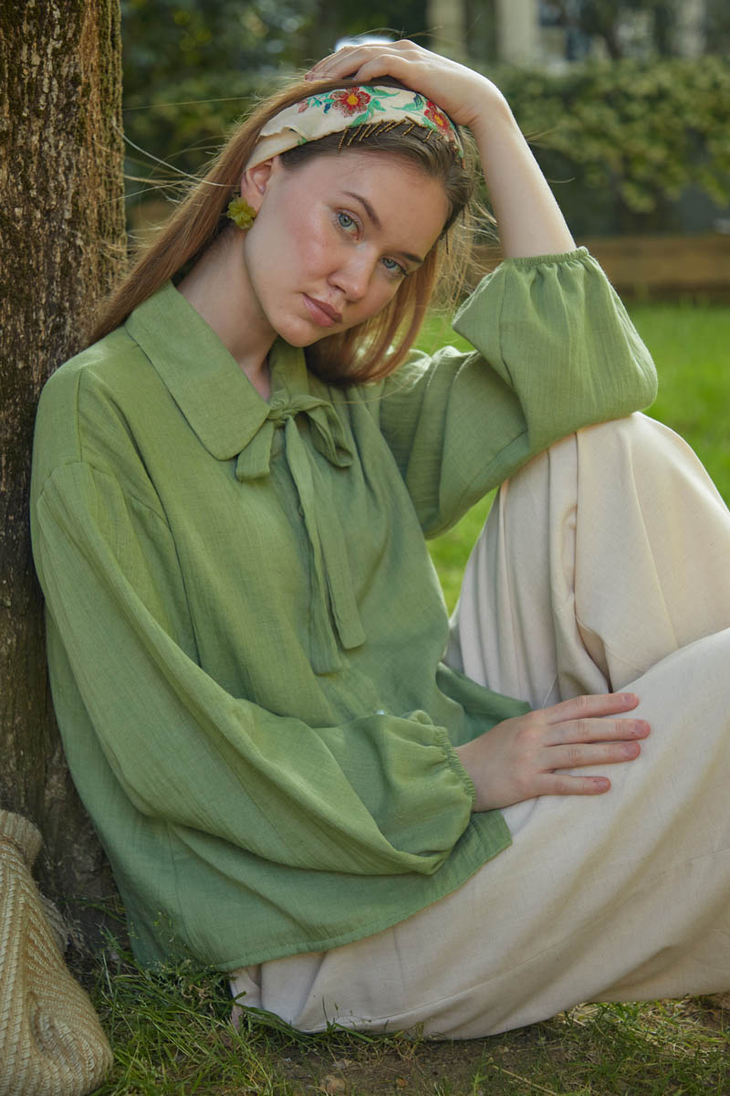 Bağlamalı Vual Gömlek Soft Yeşil, Modern ve rahatlığı bir arada arayanlar için özel olarak tasarlanan gömlek kaliteli İtalyan pamuğunun hafif ve nefes alabilen yapısıyla öne çıkıyor. Vual dokusu sayesinde teninizde ipeksi bir his bırakırken, hava akışını sağlayarak sıcak günlerde bile ferah kalmanızı garanti eder.