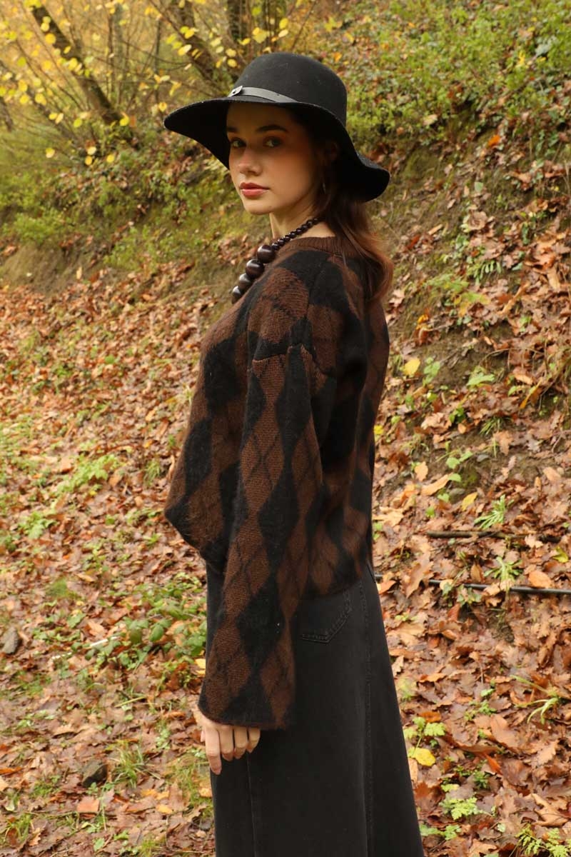 Baklava Tüylü Kazak Acı Kahve. Bisiklet yaka, düşük omuzlu, yakası ribanalıdır, dokusu tüylüdür. Etek, elbise ve pantolon üzerine tercih edilebilir. Kış aylarında tercih edebilirsiniz.