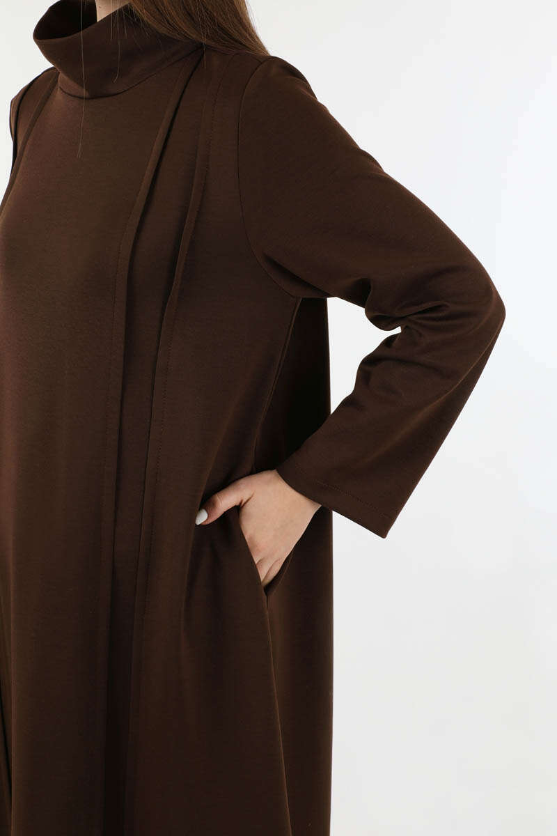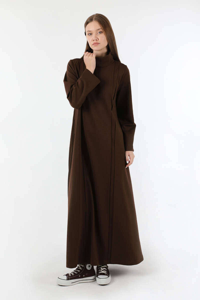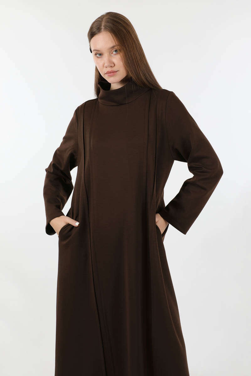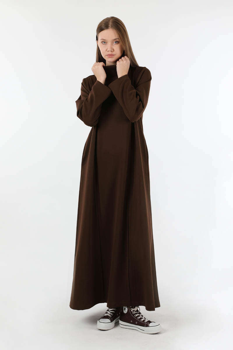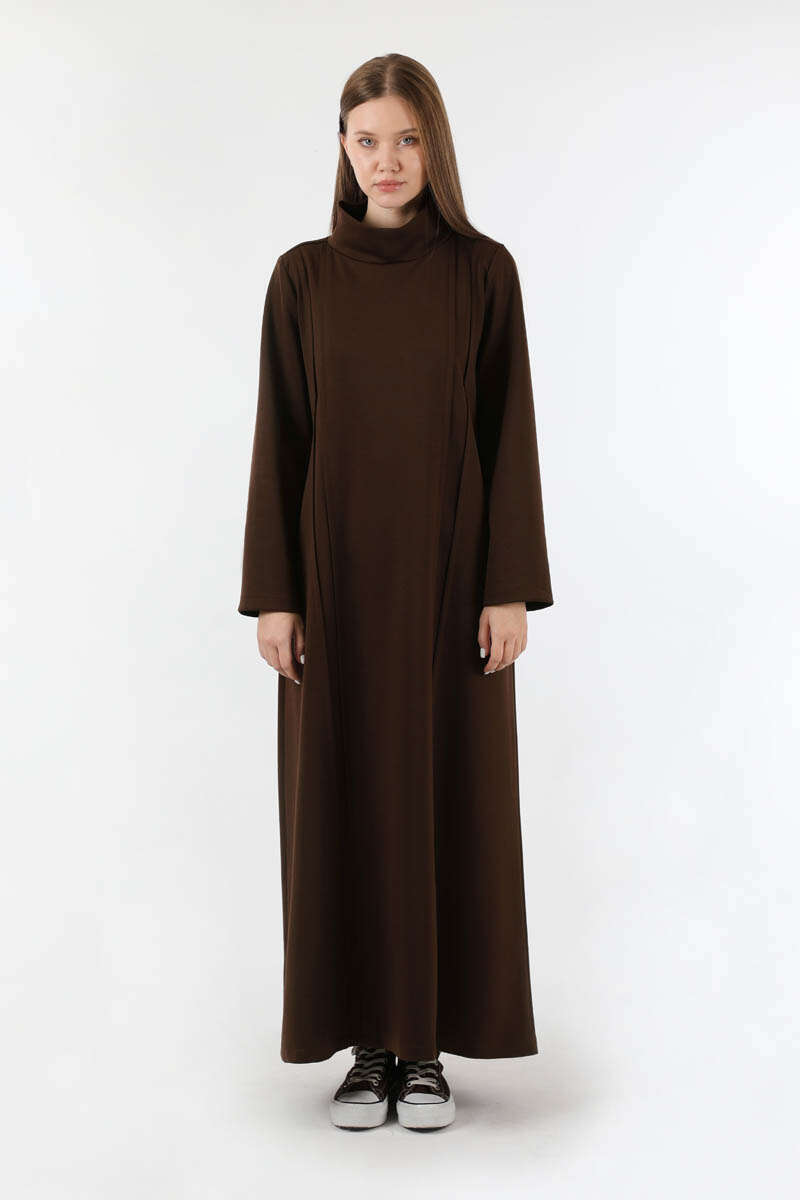 Balıkçı Yaka Nervür Detaylı Elbise Kahve