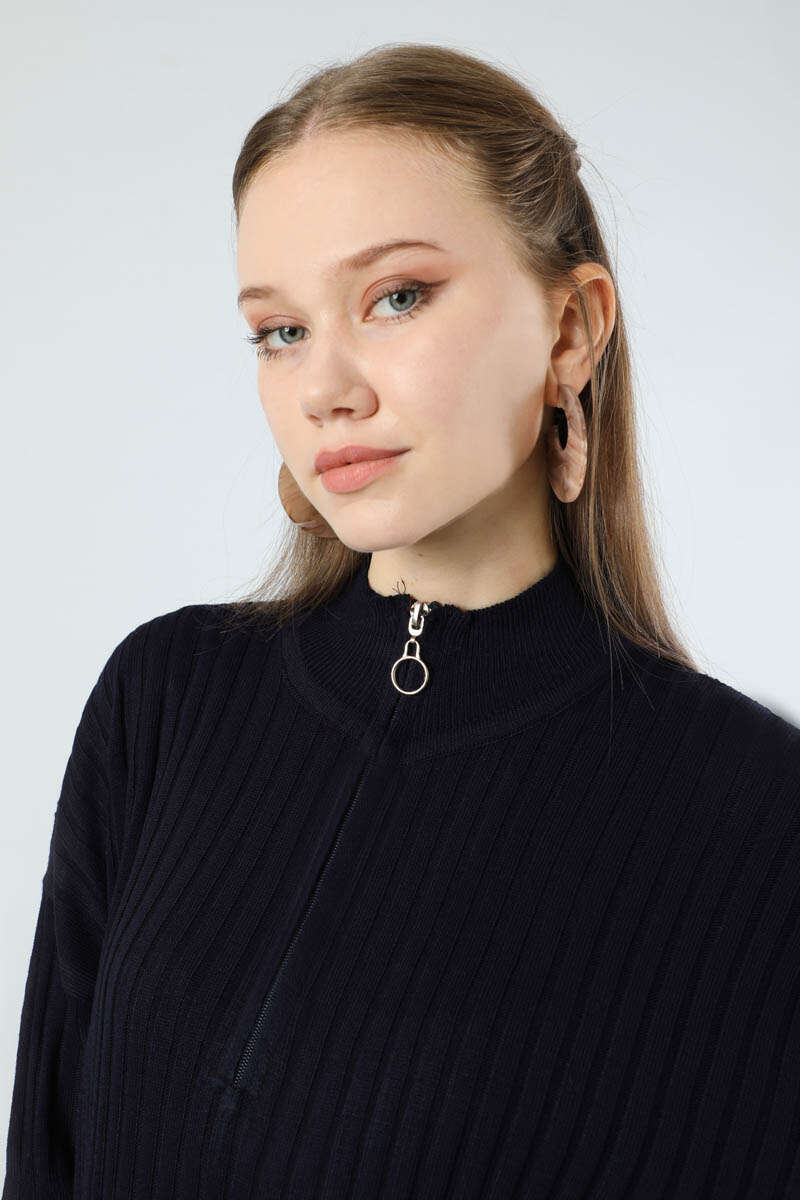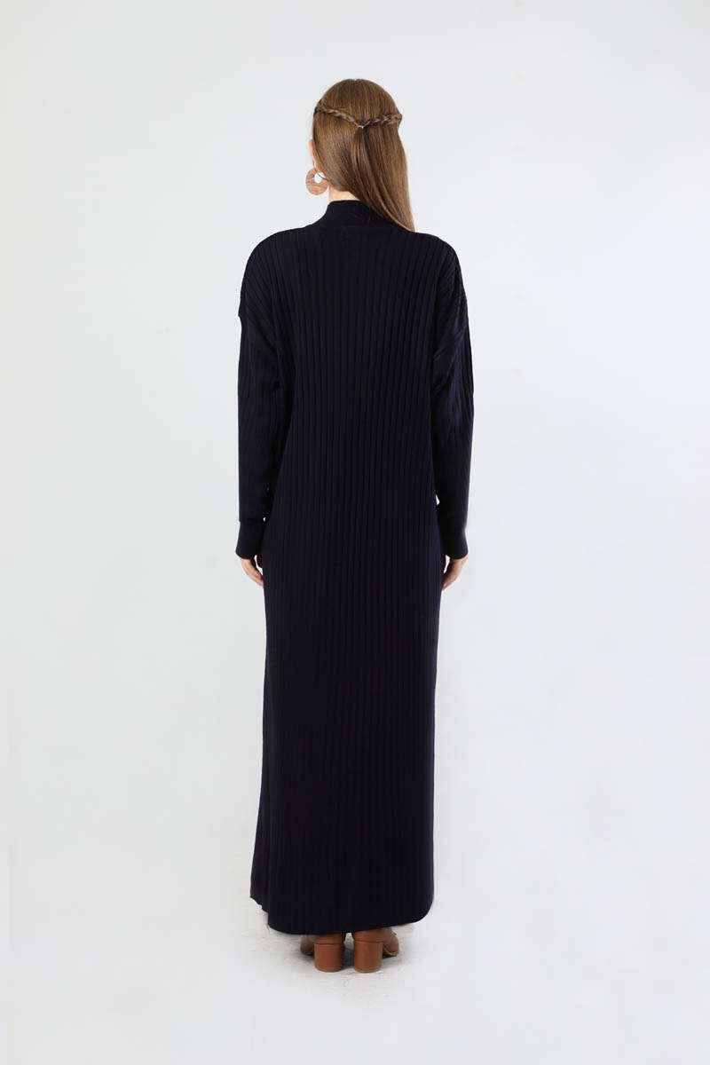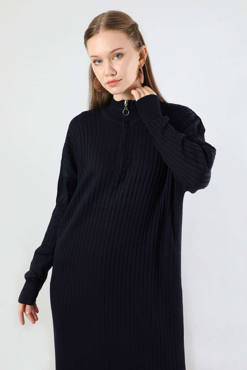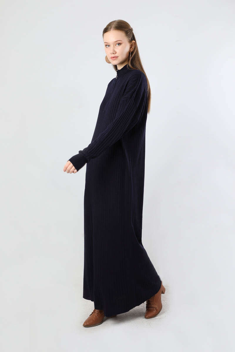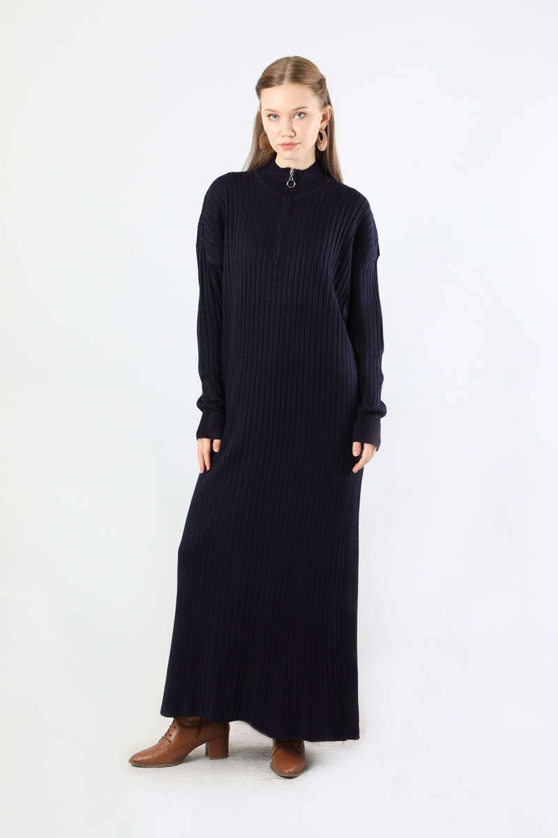 Balıkçı Yaka Triko Elbise Lacivert. Yakası fermuarlıdır. Düşük omuzludur. Yarım balıkçı yakalıdır. Günlük kullanım ve özel günlerinizde tercih edebilirsiniz.