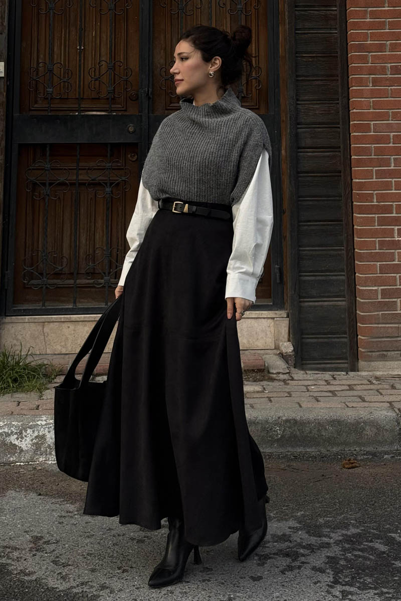 Balıkçı Yaka Triko Süveter Antrasit, modern ve sıcak tutan dokusuyla kış kombinlerinin vazgeçilmez tamamlayıcısıdır. Yumuşak triko yapısı sayesinde rahat bir kullanım sunarken, kolsuz formu katmanlı giyimde şıklığı kolayca yakalamanı sağlar. Balıkçı yaka detayı hem stil hem de sıcaklık kazandırarak, elbiselerden gömleklere kadar birçok parçayla zahmetsizce uyum sağlar.
