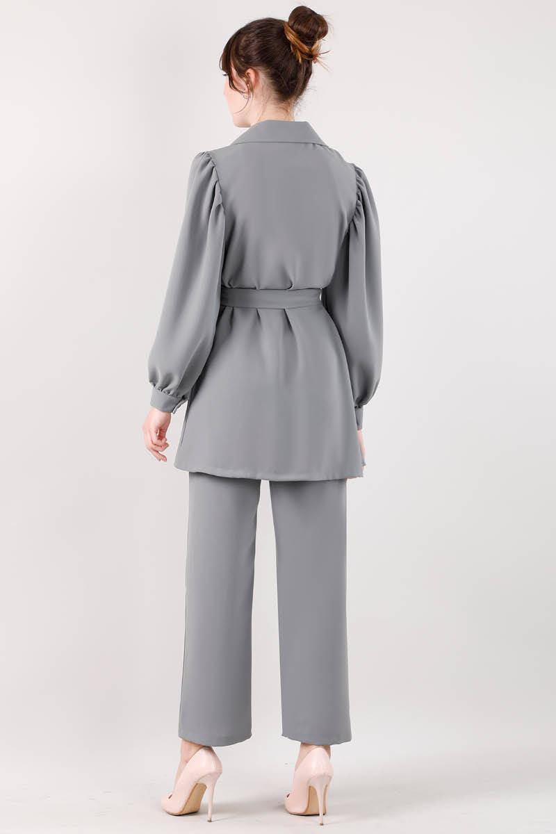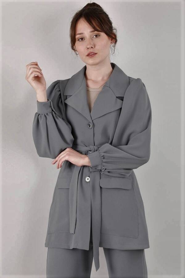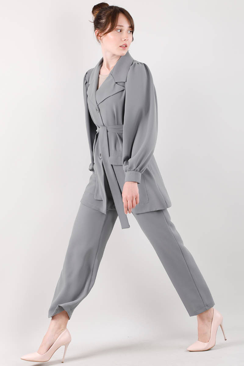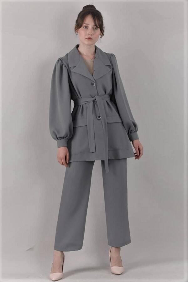 Balon Kol Ceket Pantolon Takım Gri