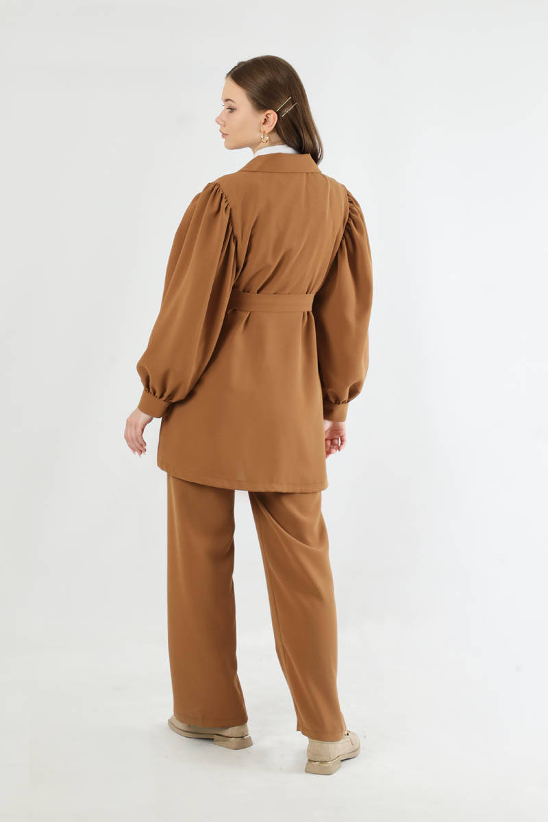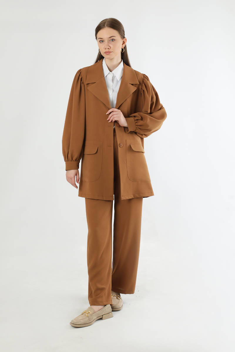 Balon Kol Ceket Pantolon Takım Taba