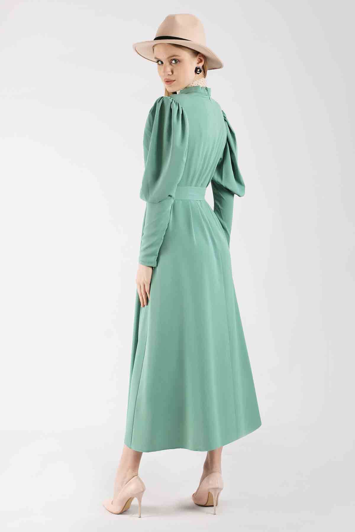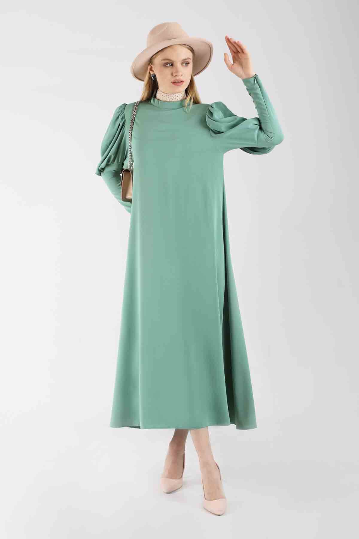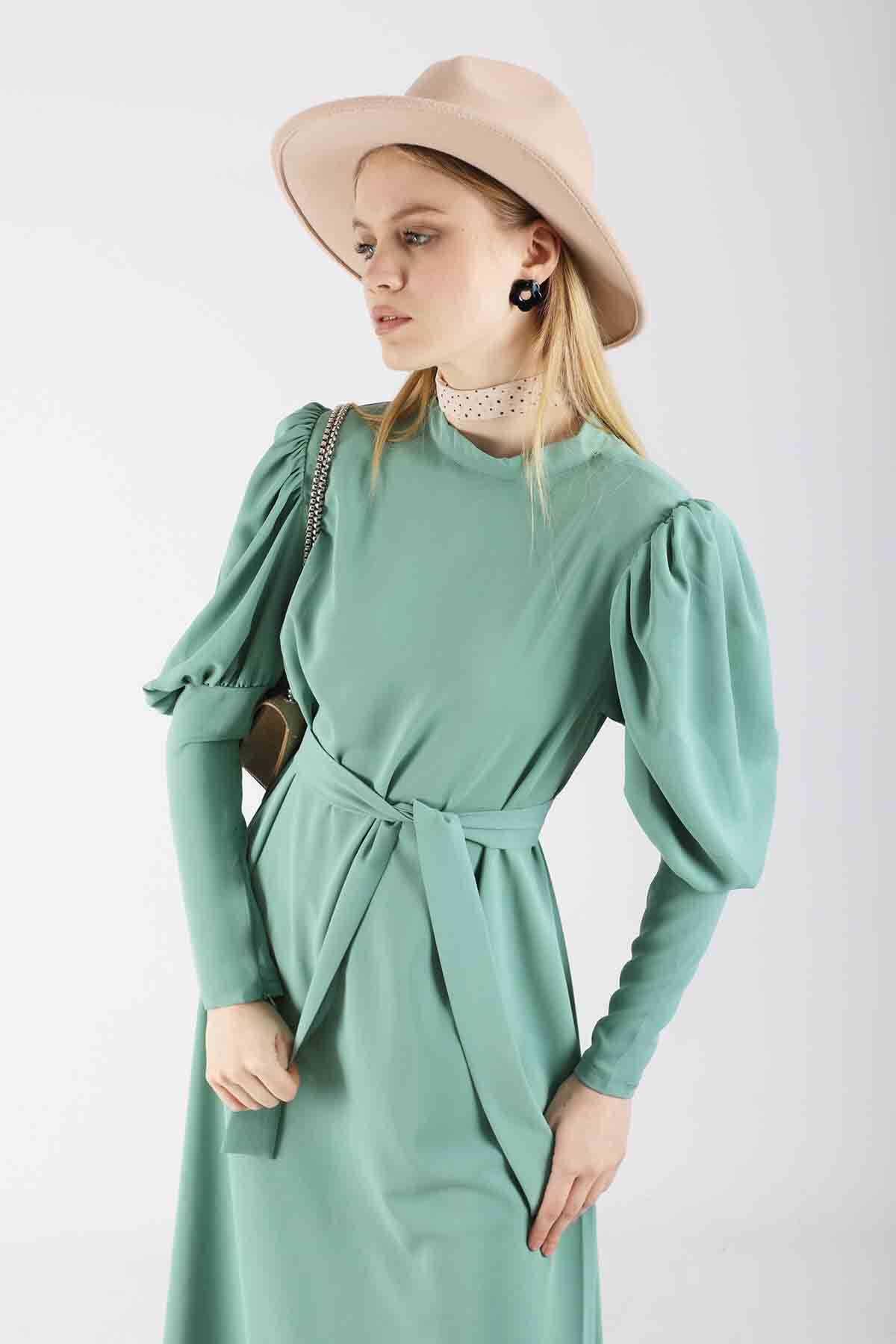 Balon kol, manşetleri fermuarlıdır. Belden kuşaklıdır. Arkadan fermuarlıdır. İç göstermez. Astarsızdır.