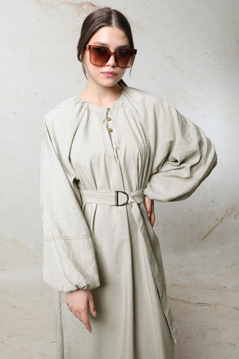 Balon Kol Elbise.Oversize Kesimdir.Kemerlidir.Yaz aylarında rahatça kullanabileceğiniz rahat kumaştan imal edilmiiştir.