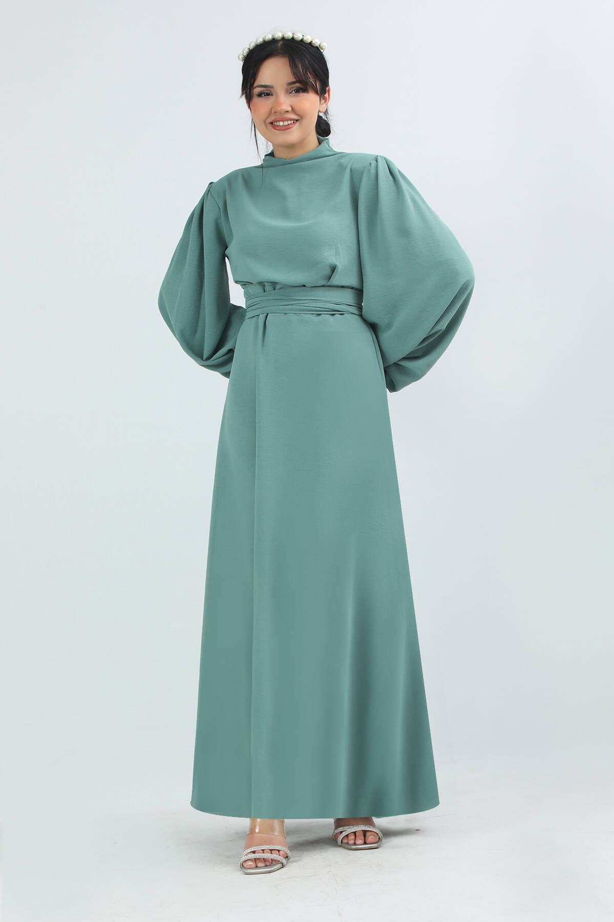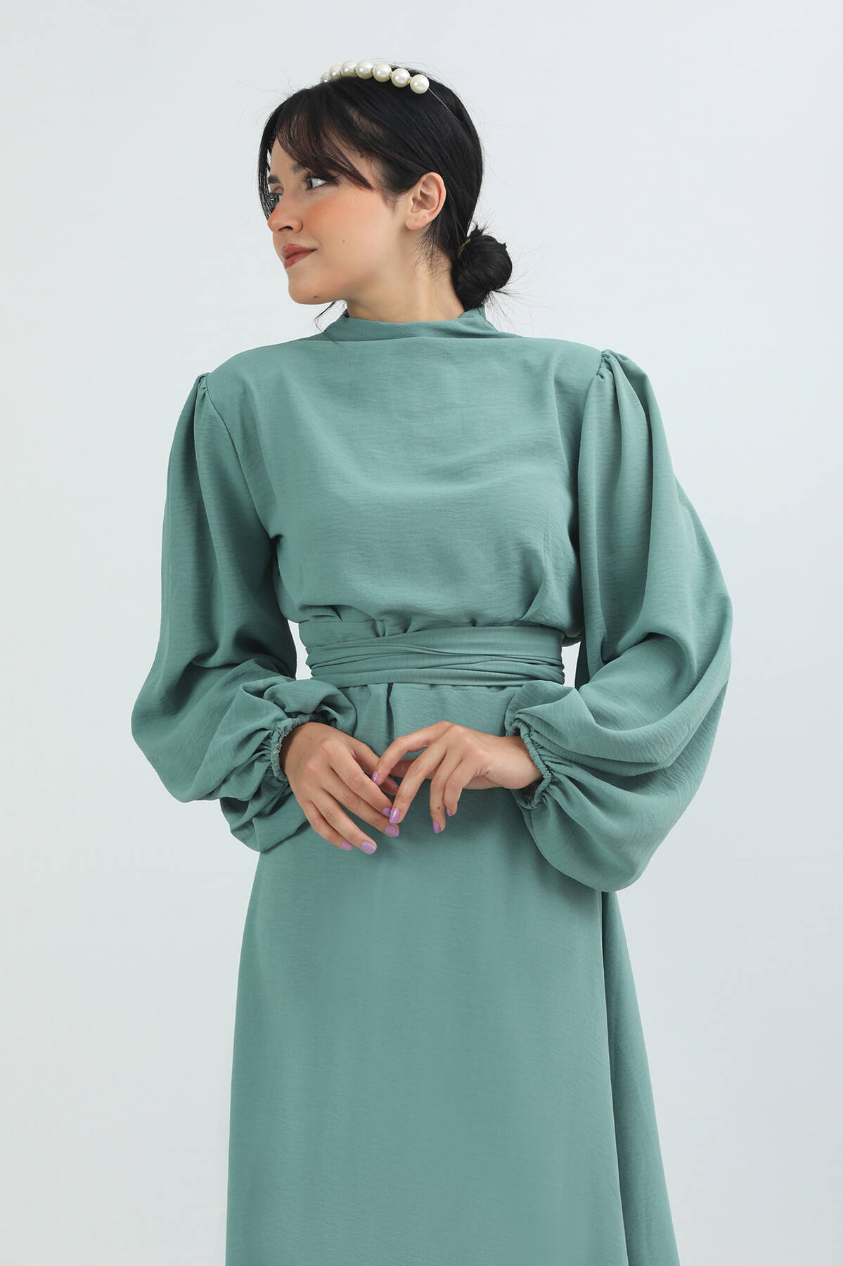 Balon Kol Gipeli Elbise Mint