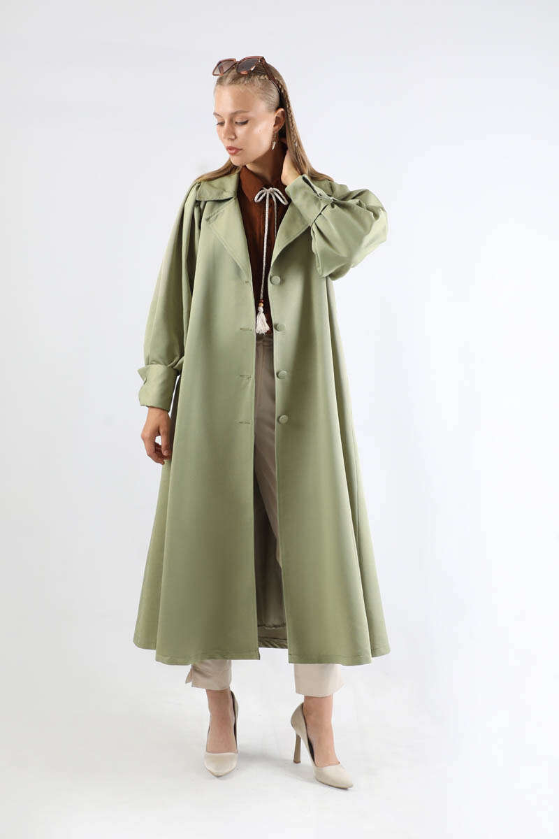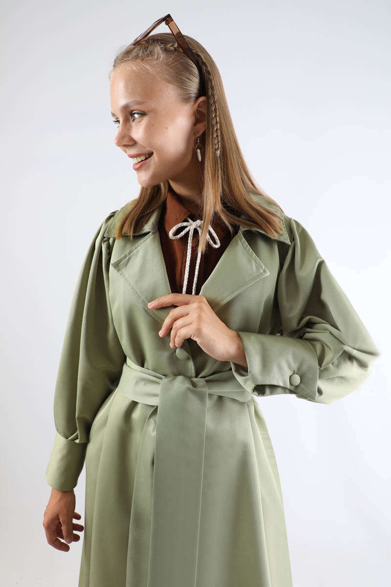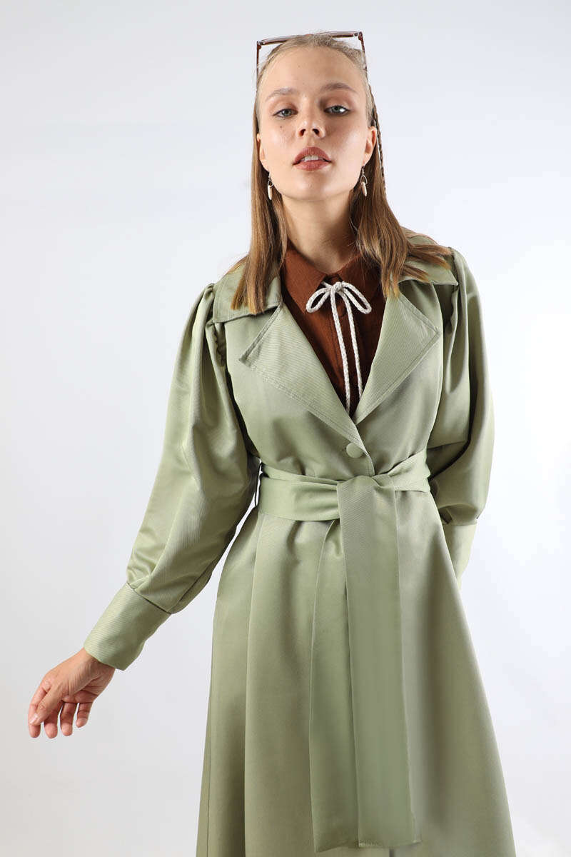 Balon Kol Trençkot Mint. Çift manşetlidir. Omuz tepesi büzgülüdür. Yandan ceplidir. Kaplama düğme detaylıdır. Manşeti büzgü detaylıdır. Kuşaklıdır. Günlük kullanım ve özel günlerinizde tercih edebilirsiniz.