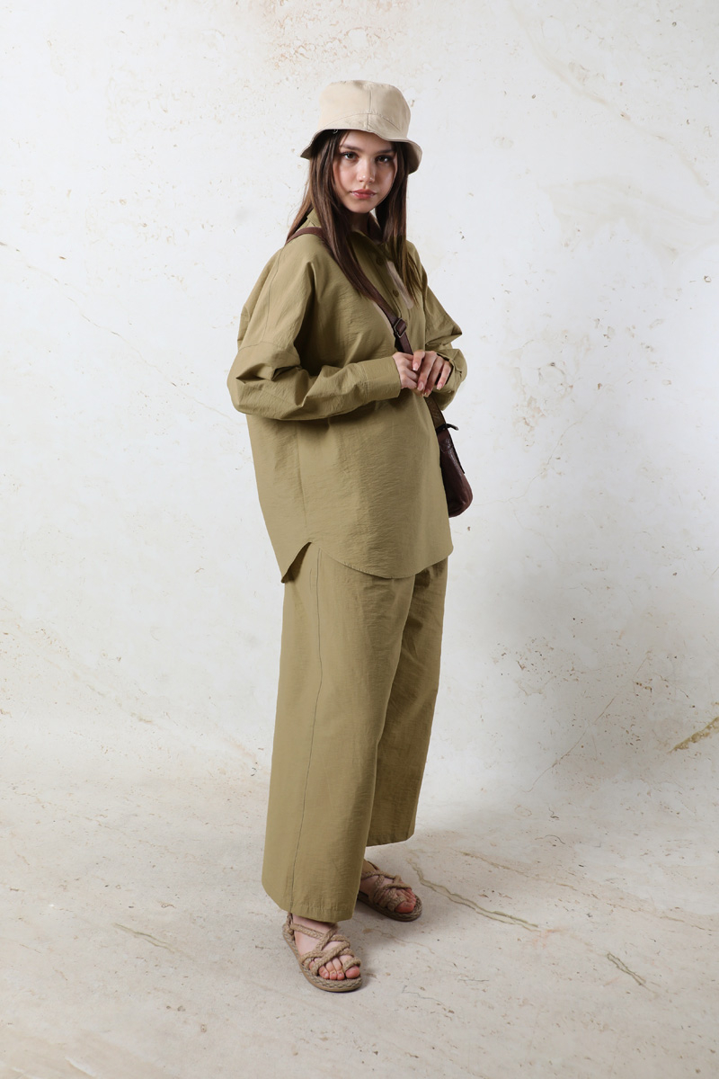 Basic Bol Takım . Pantolon beli lastikli, yandan ceplidir. İkili takım olarak satılmaktadır. Günlük kullanıma uygundur.
