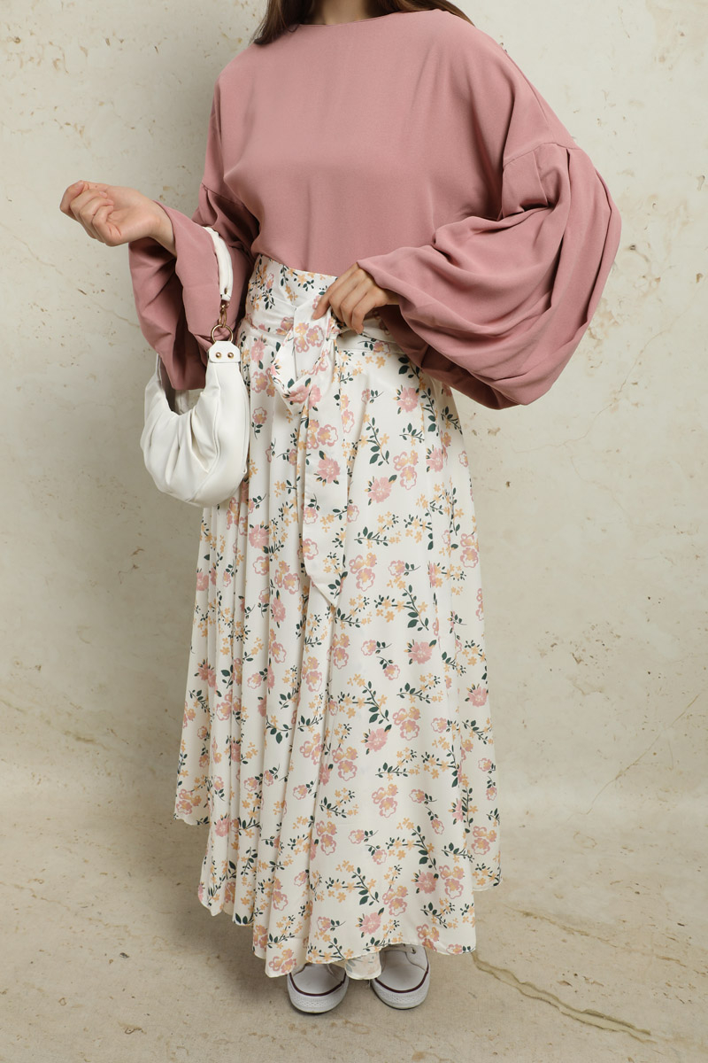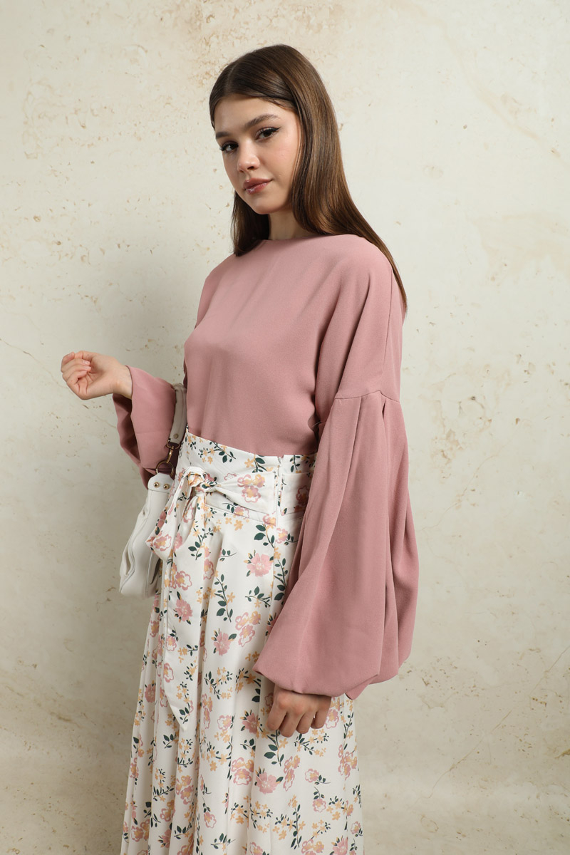 Balon Kol Etek Takım Pudra.Tunik ve etek olarak ikili takımdır. Astarlıdır. İç göstermez. Yeni sezonun favori ürünlerindendir.
