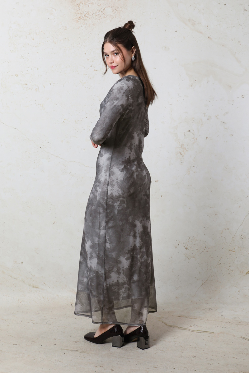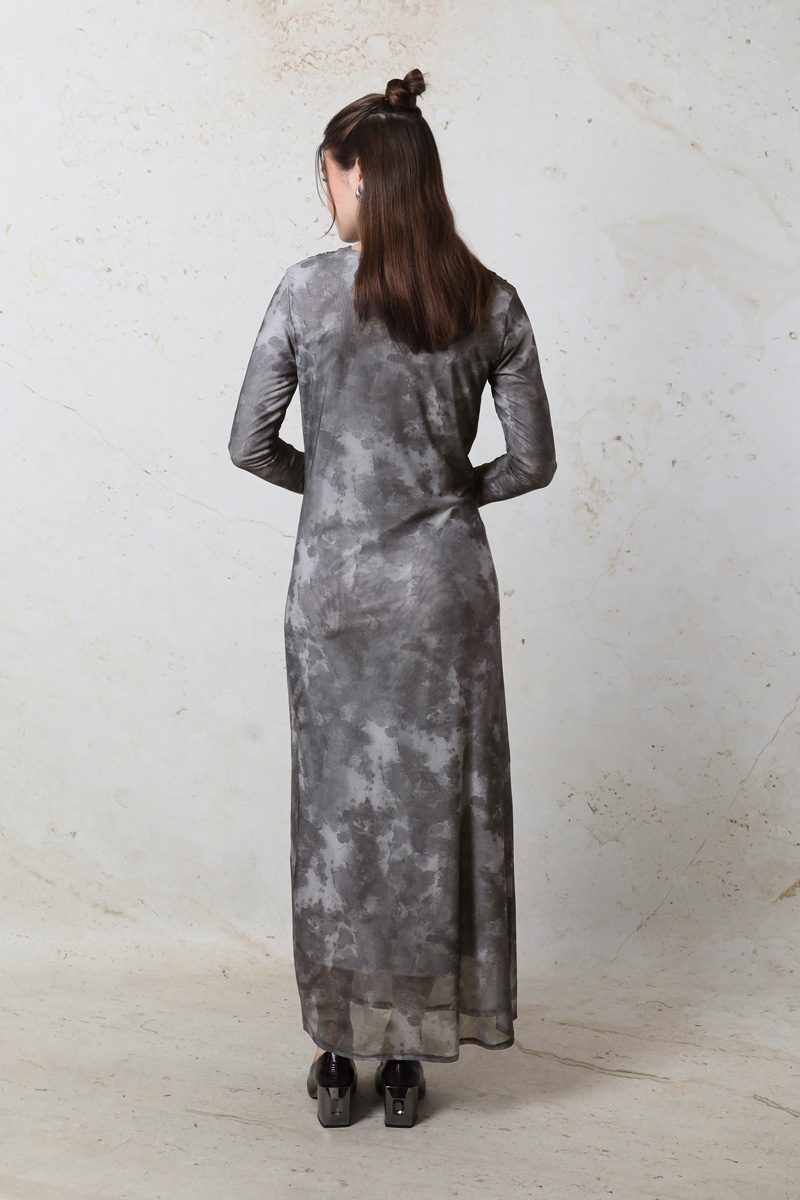 Batik Desen Tül Elbise Füme. Parmak geçirme detayı mevcuttur. Degaje yakalıdır.Uzun kolludur.Astarlıdır.Arka kısmında düğme detayı mevcuttur.Ürünümüzün kalıbı dar kalıptır.