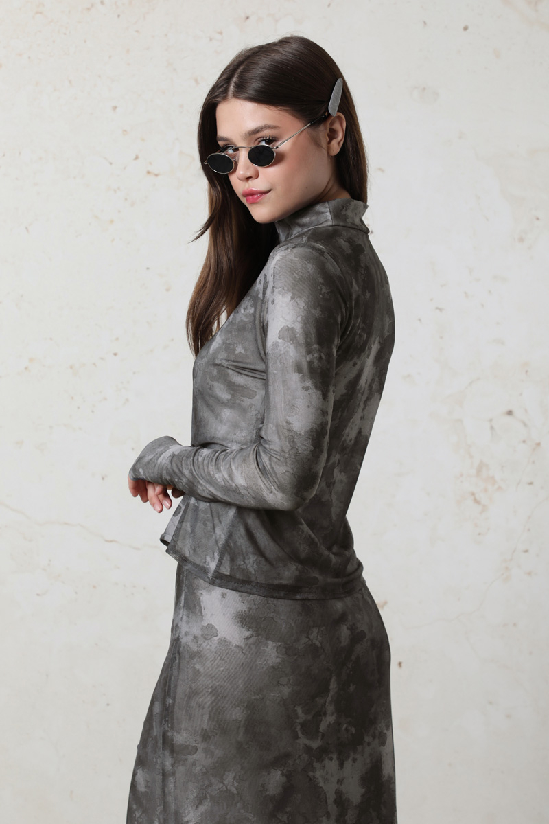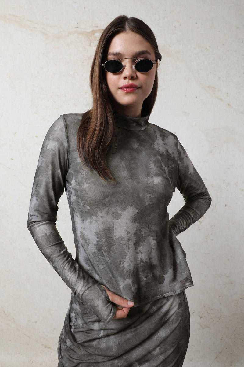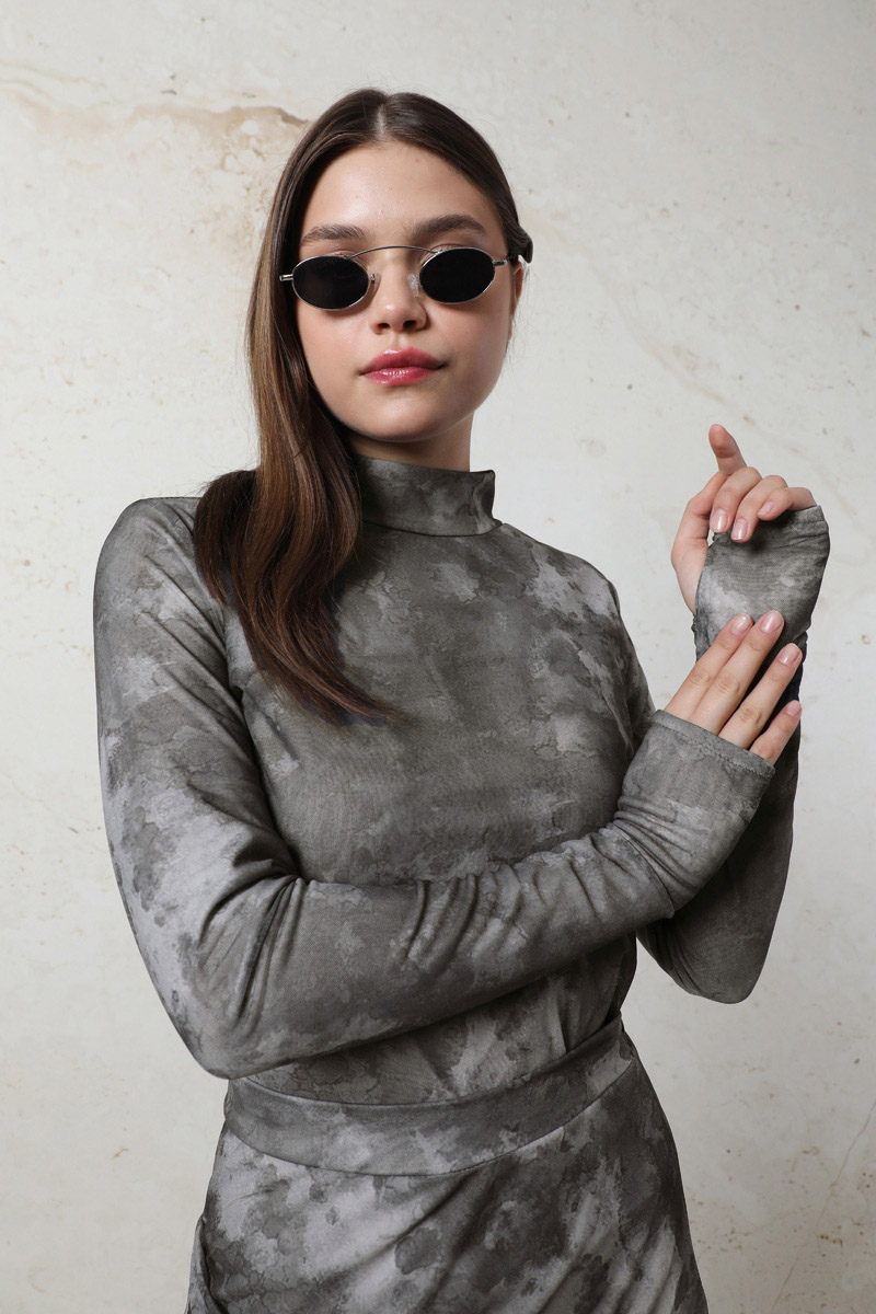 Batik Desenli Body Füme.Bisiklet yakalıdır. Uzun kolludur. Parmaktan geçirme detayı vardır. Yumuşak ve esnek kumaşlıdır. Günlük kullanımda tercih edebilirsiniz.
