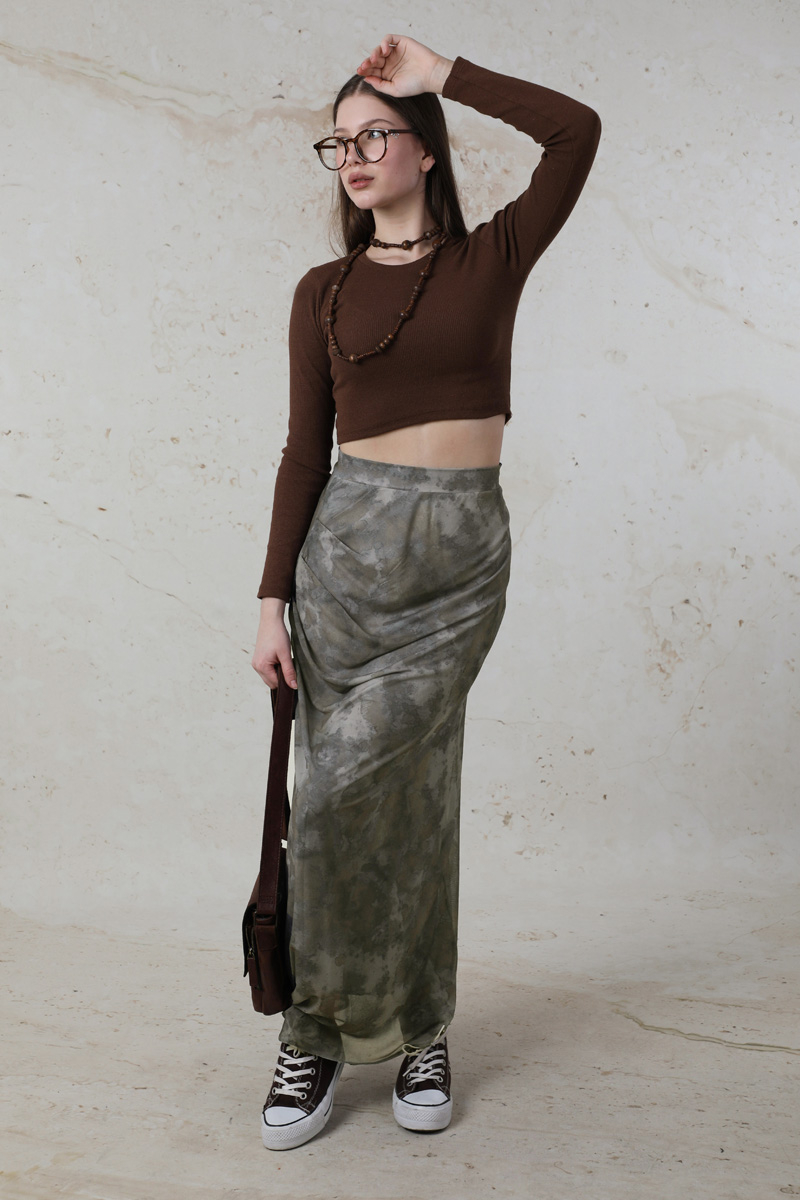 Batik Desenli Tül Etek Haki. Yandan gizli fermuar detaylıdır. Önden büzgülüdür. Astarlıdır. Tam boy. Günlük kullanım ve özel günlerinizde tercih edebilirsiniz.