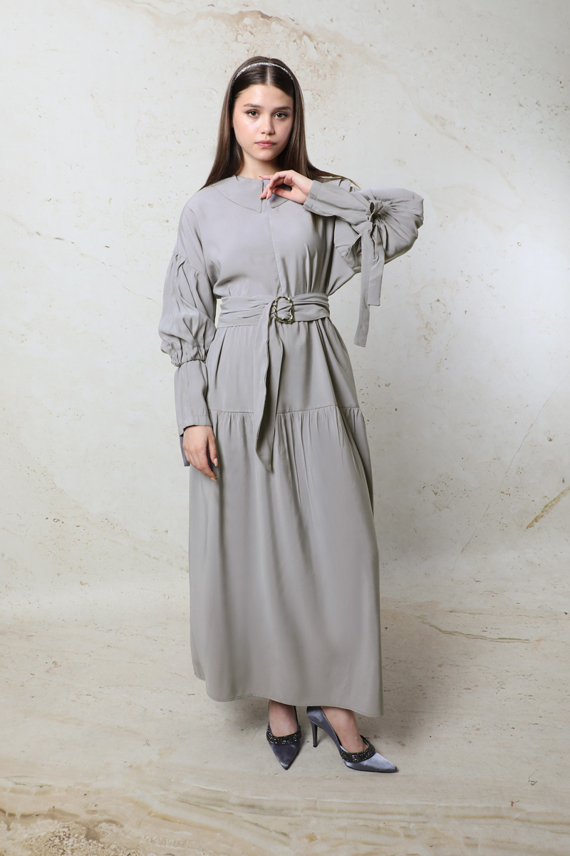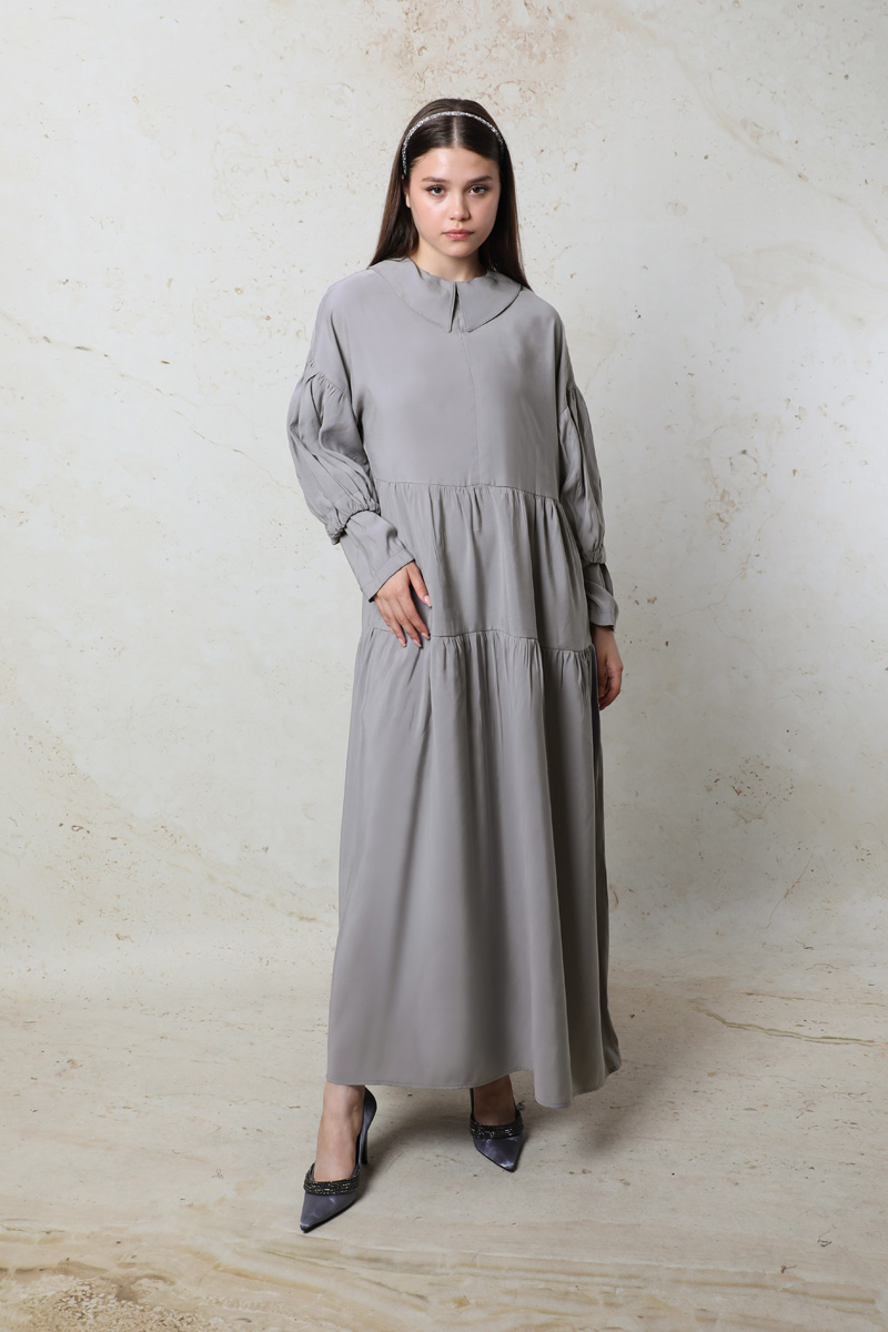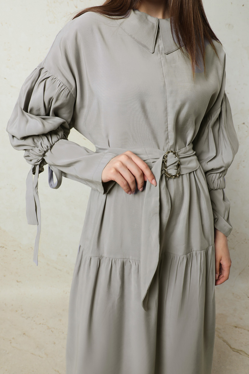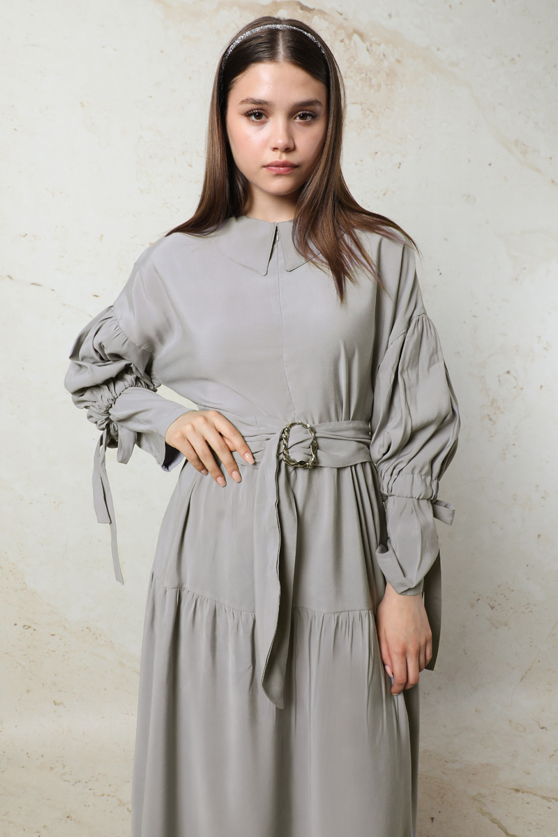 Bebe Yaka Büzgülü Elbise Gri