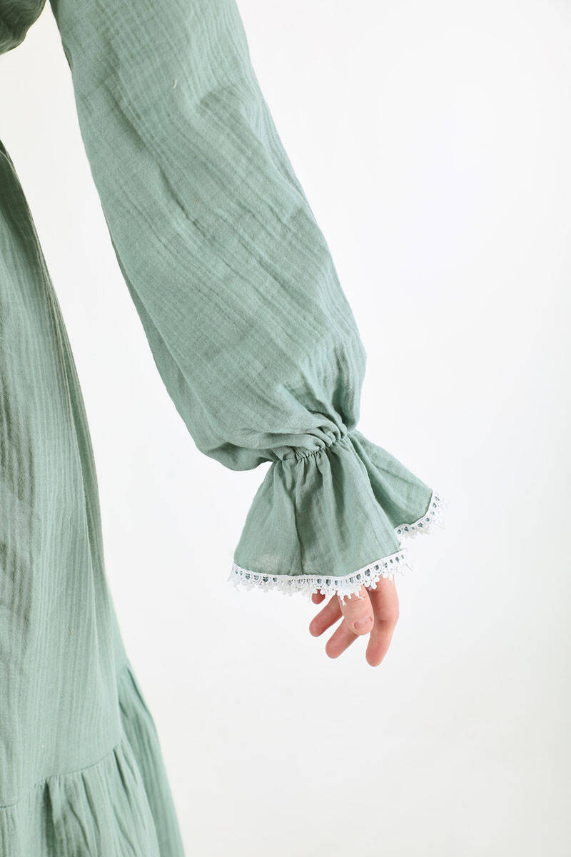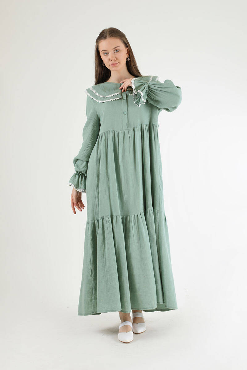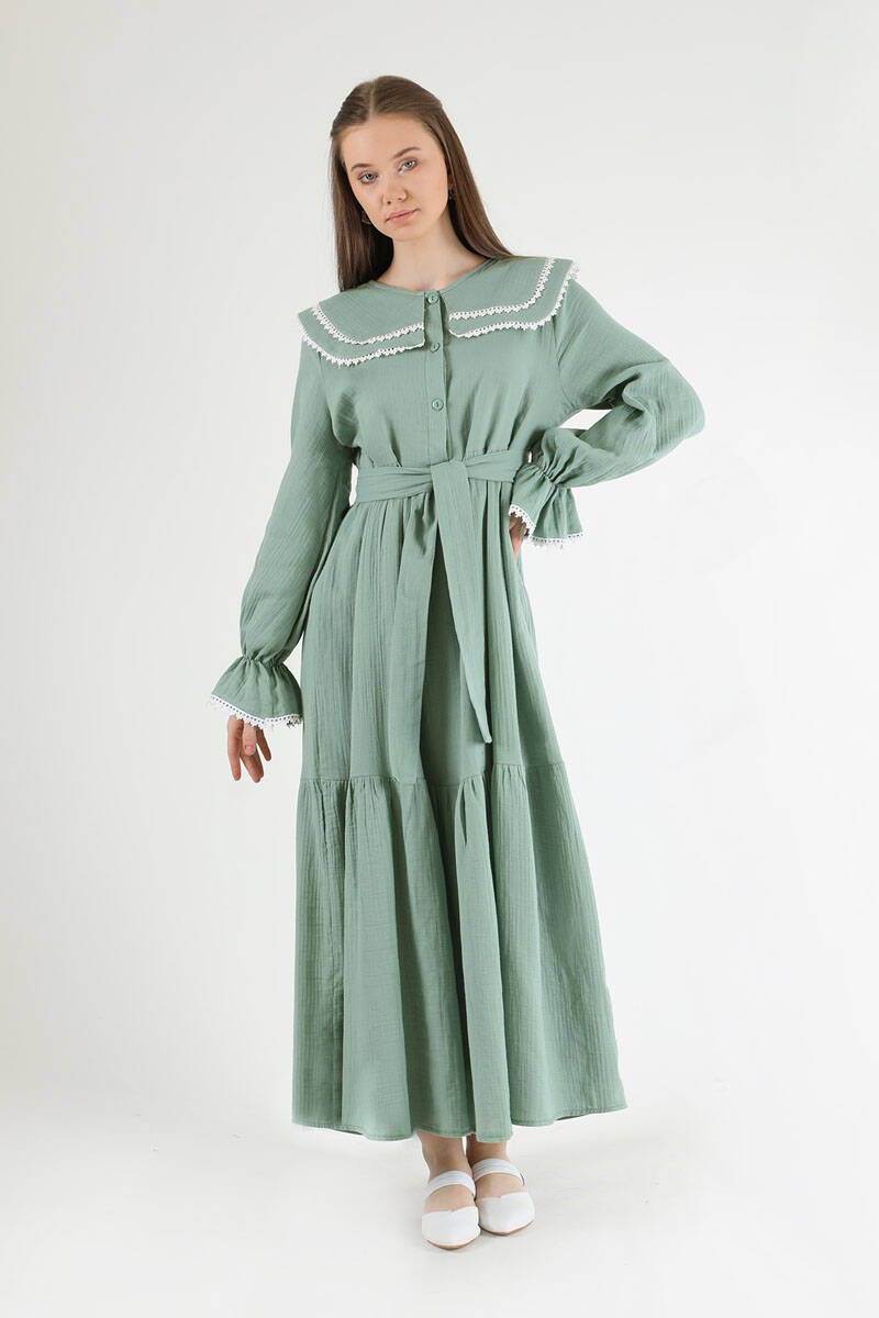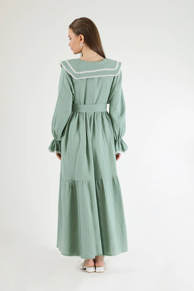 Bebe Yaka Kuşaklı Elbise Mint