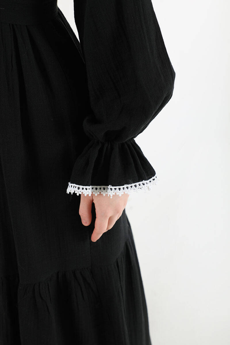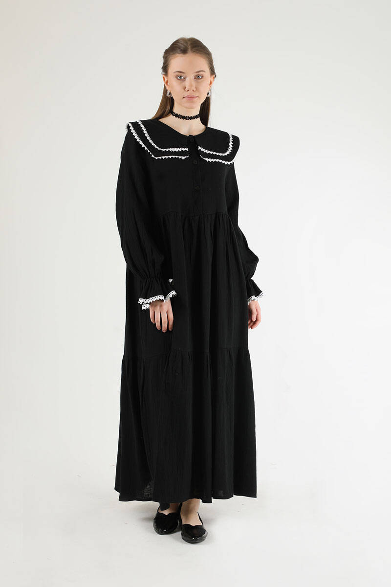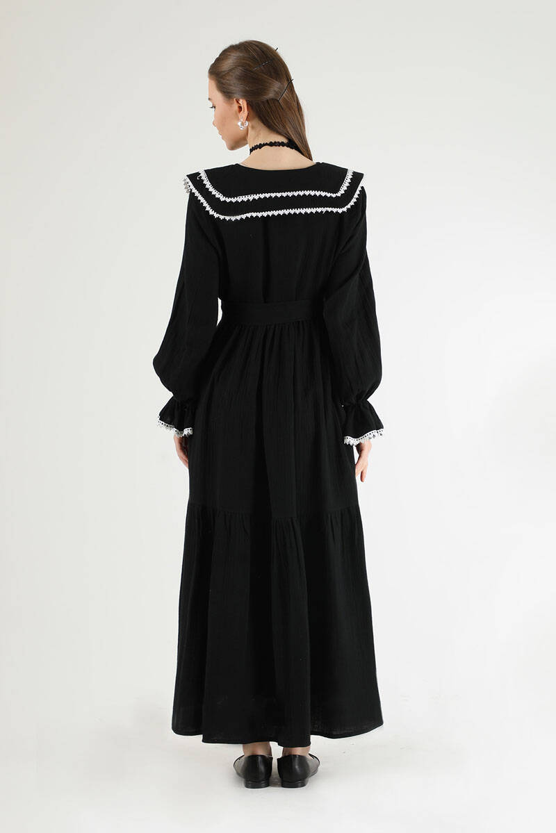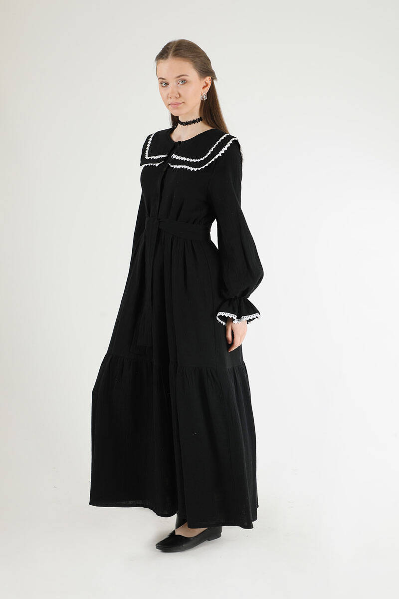 Bebe Yaka Kuşaklı Elbise Siyah