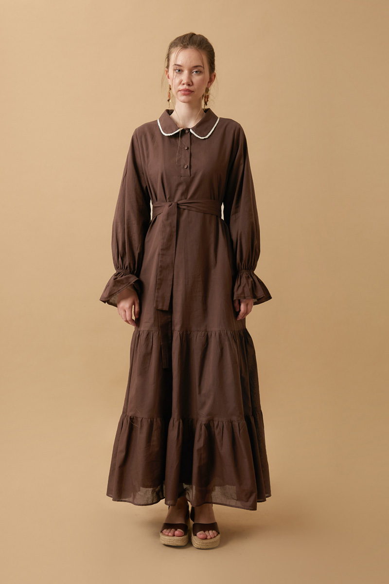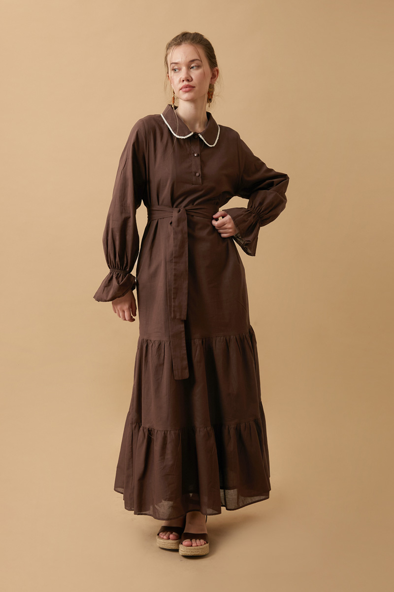 Bebe Yaka Vual Elbise Kahverengi
