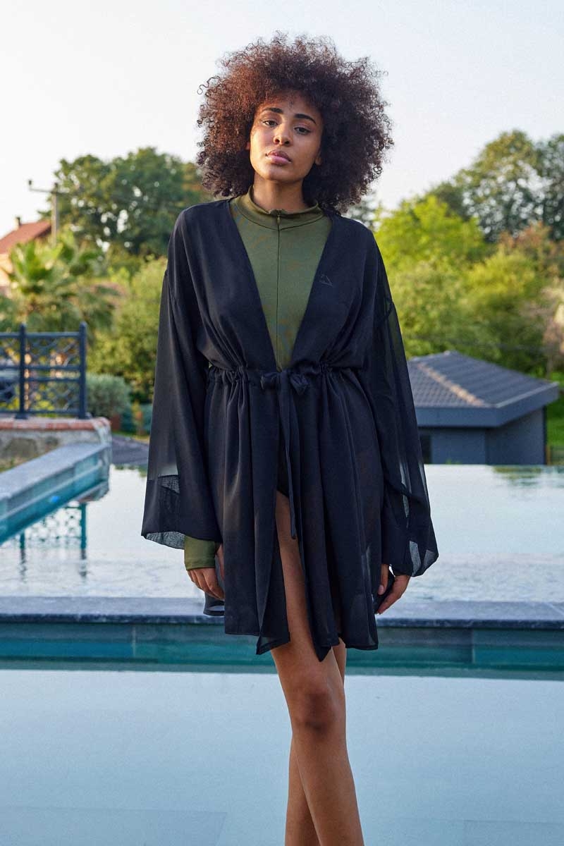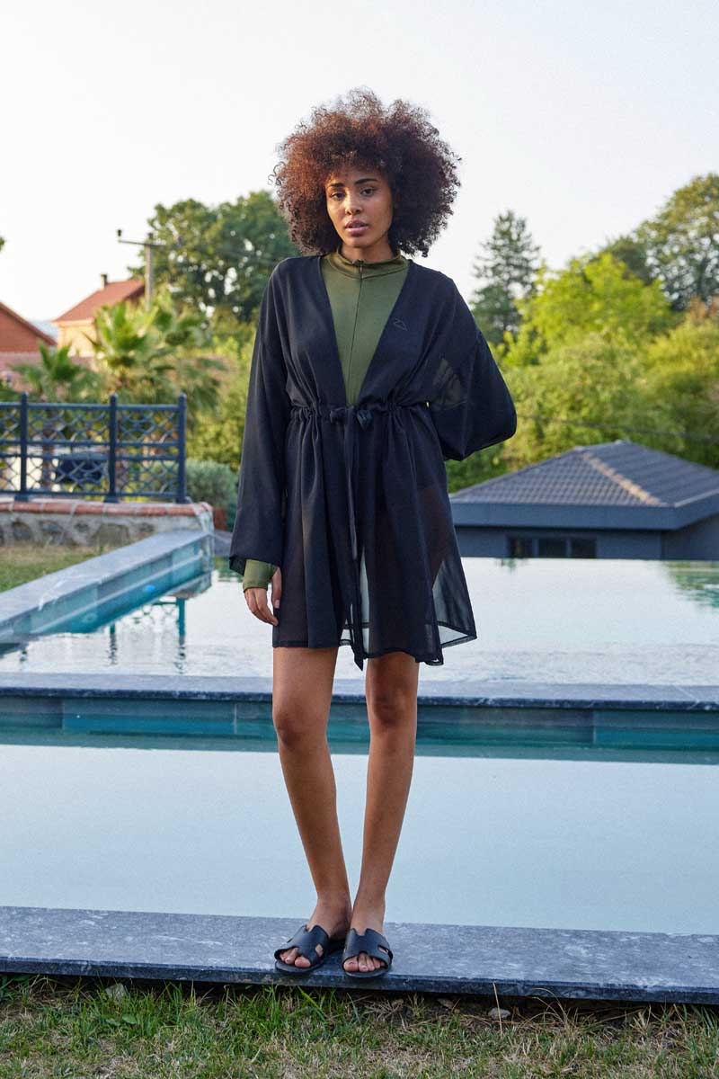 Belden Bağlamalı Kısa Pareo Siyah. Ayarlanabilir büzgülü bağlaması mevcuttur, double koldur, deniz ve havuzda kullanıma uygundur.(Şapka takıma dahil değildir)