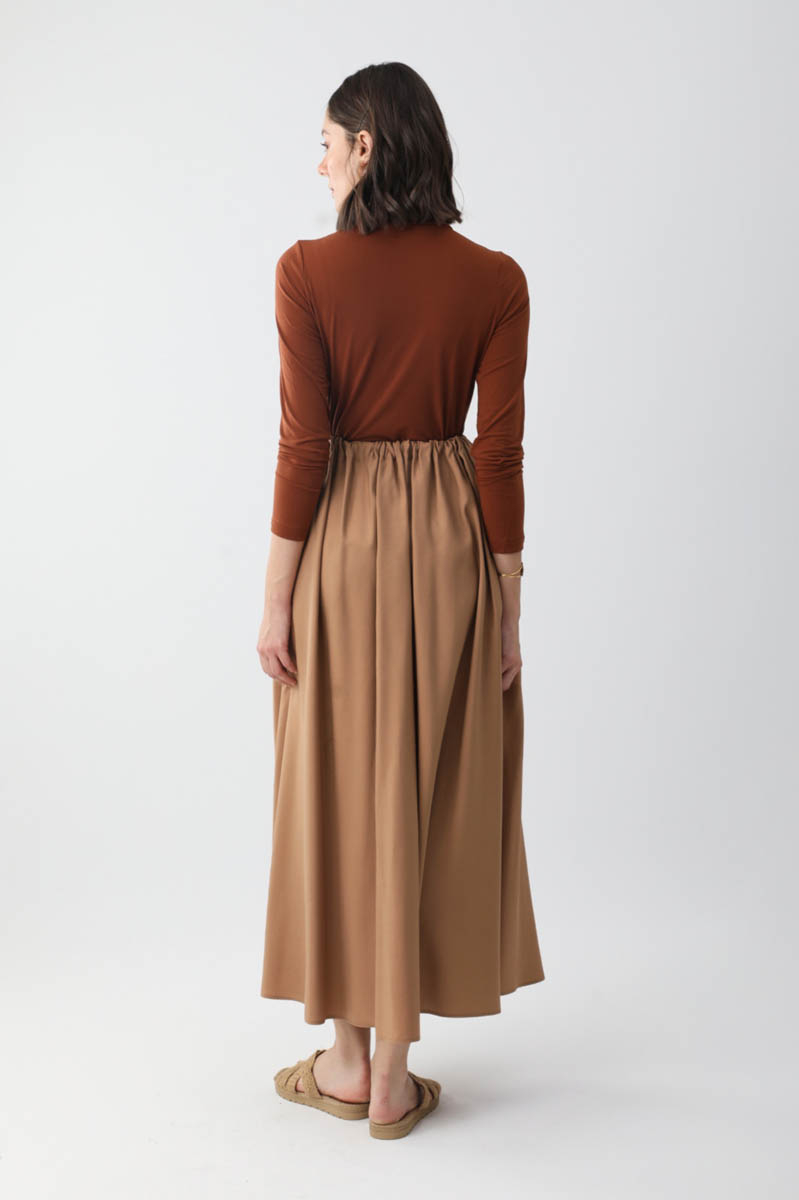 Beli Büzgülü Etek Açık Taba