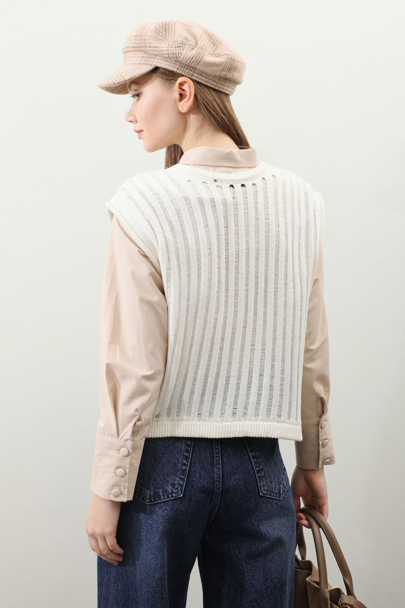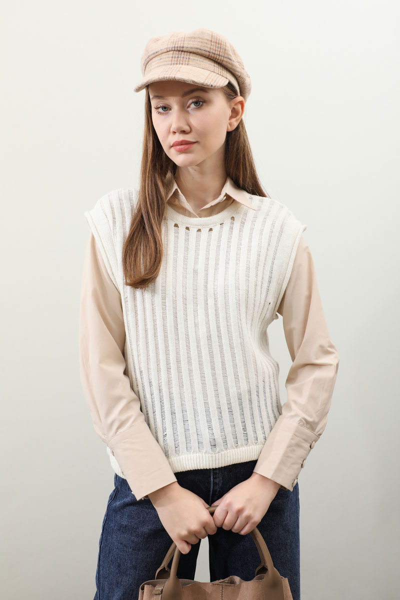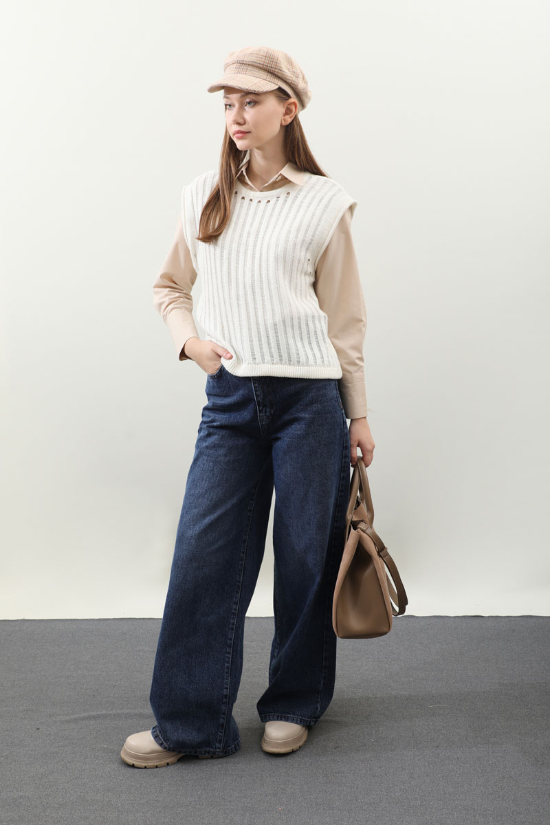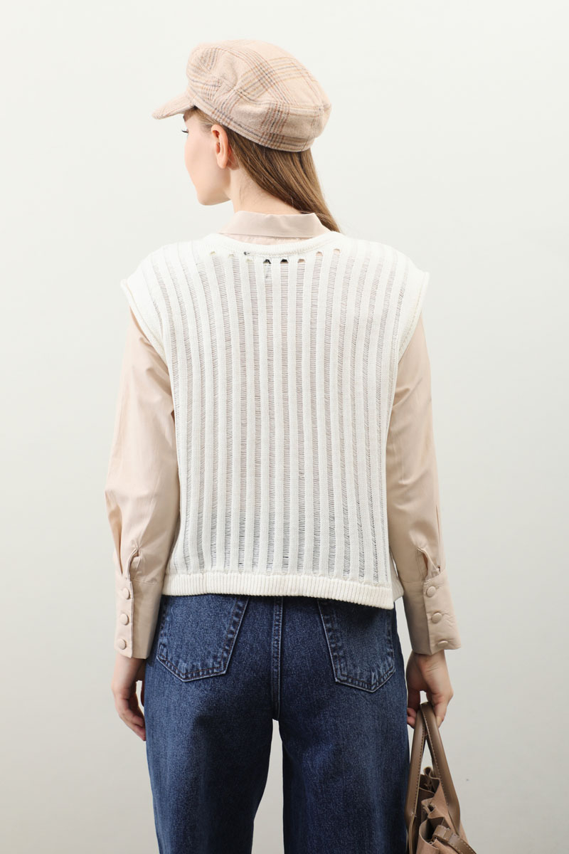 Bisiklet Detaylı Örgü Yelek Taş. Bisiklet yakadır, örgü desen detayldıır, sıfır kolludur, etek ucu ribanaldır. Ürün kendiliğinde yırtık detaylıdır. Günlük kullanım ve özel günlerinizde tercih edebilirsiniz.
