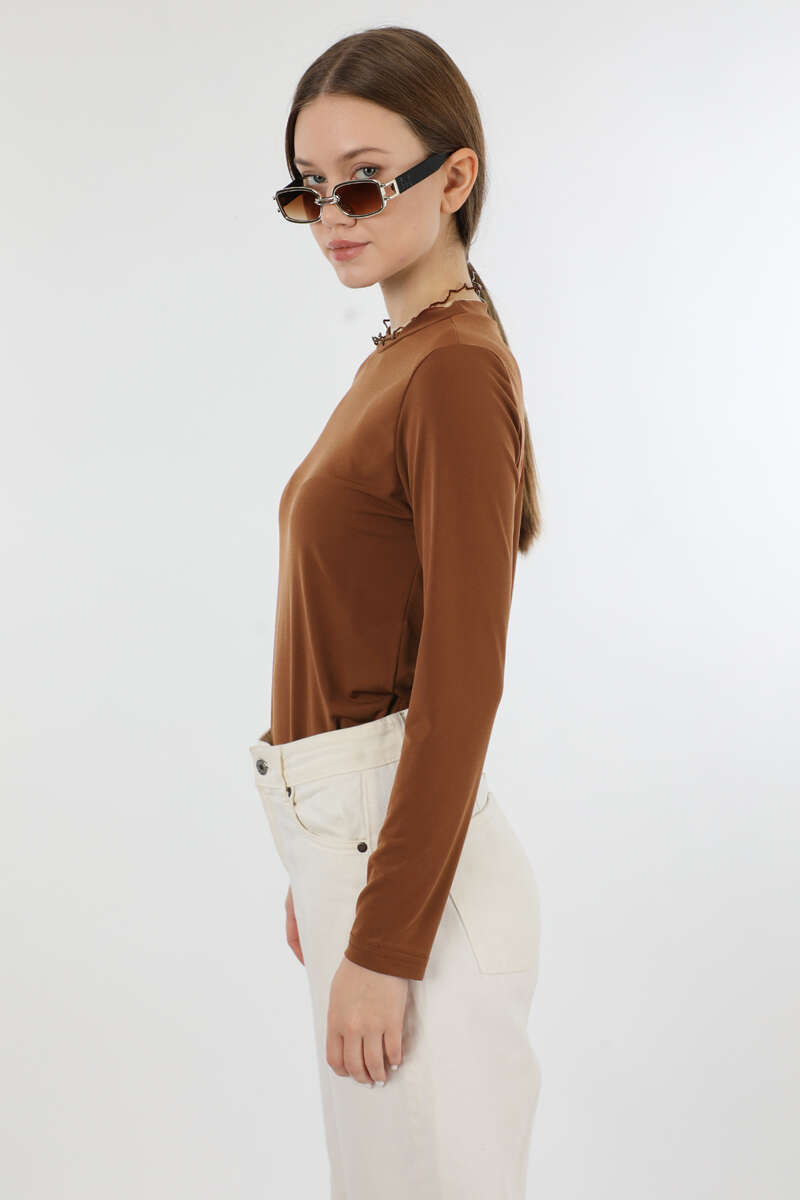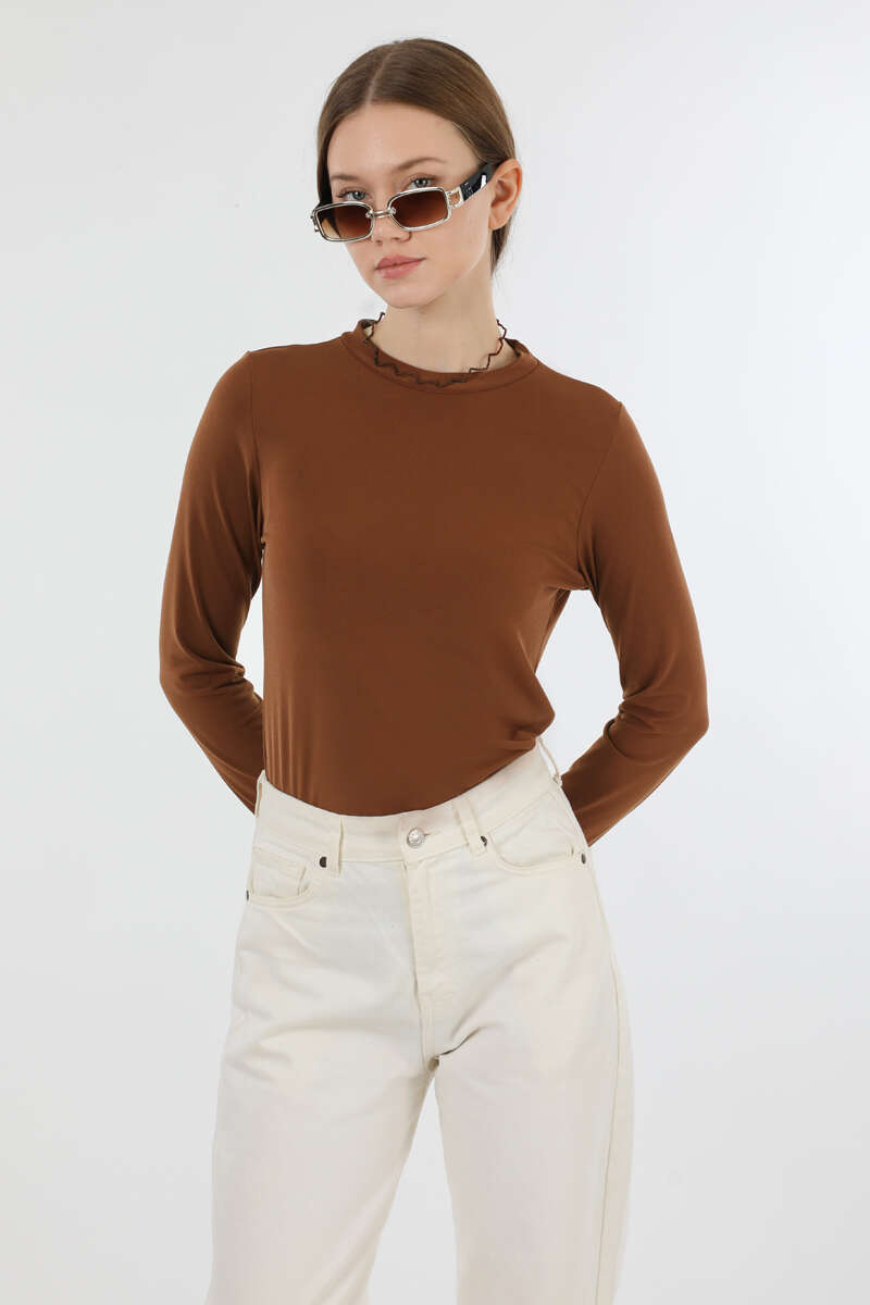 Bisiklet Yaka Body Kiremit. Bisiklet yakalıdır. Uzun kolludur. Yumuşak ve esnek kumaşlıdır. Günlük kullanım ve özel günlerinizde tercih edebilirsiniz.
