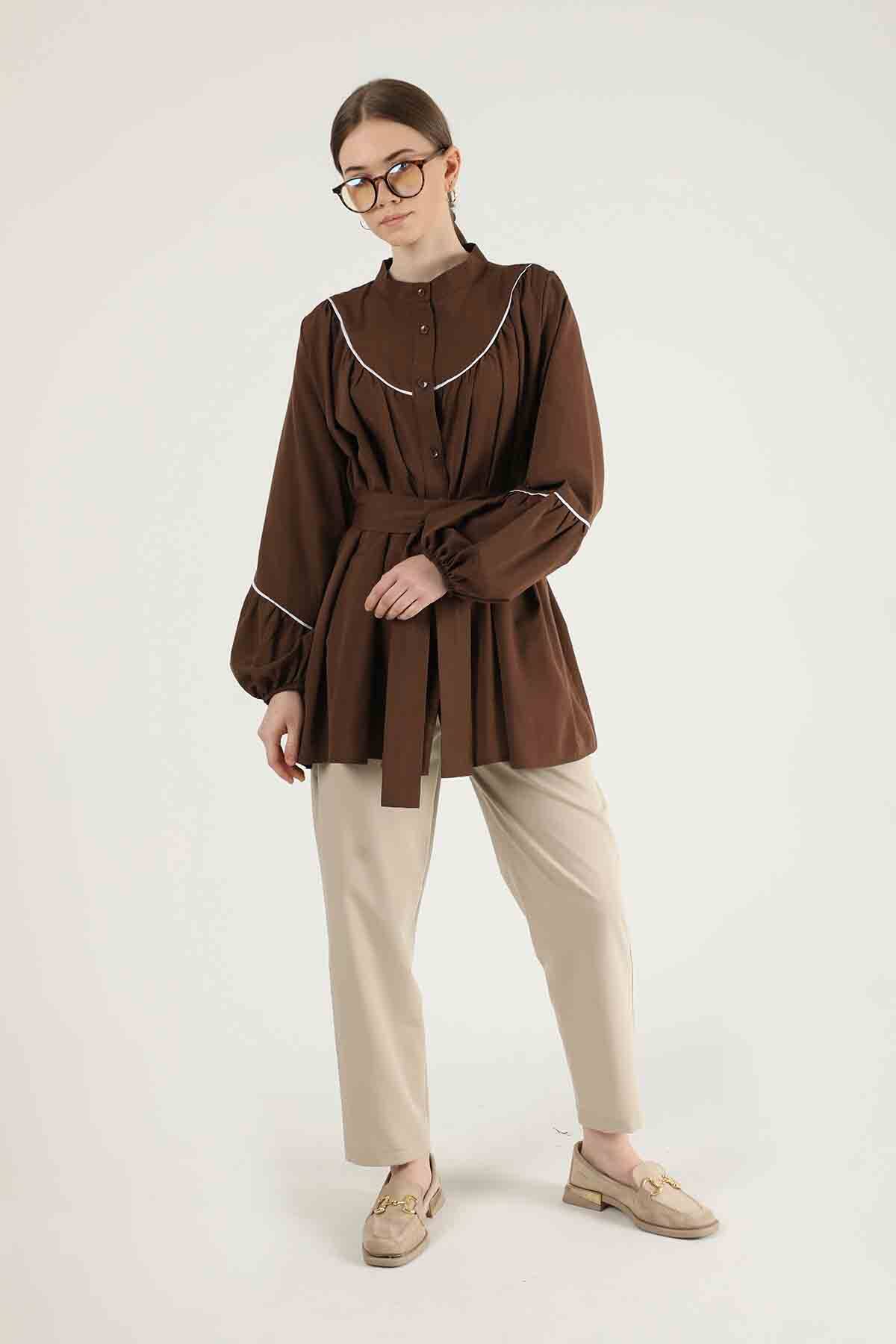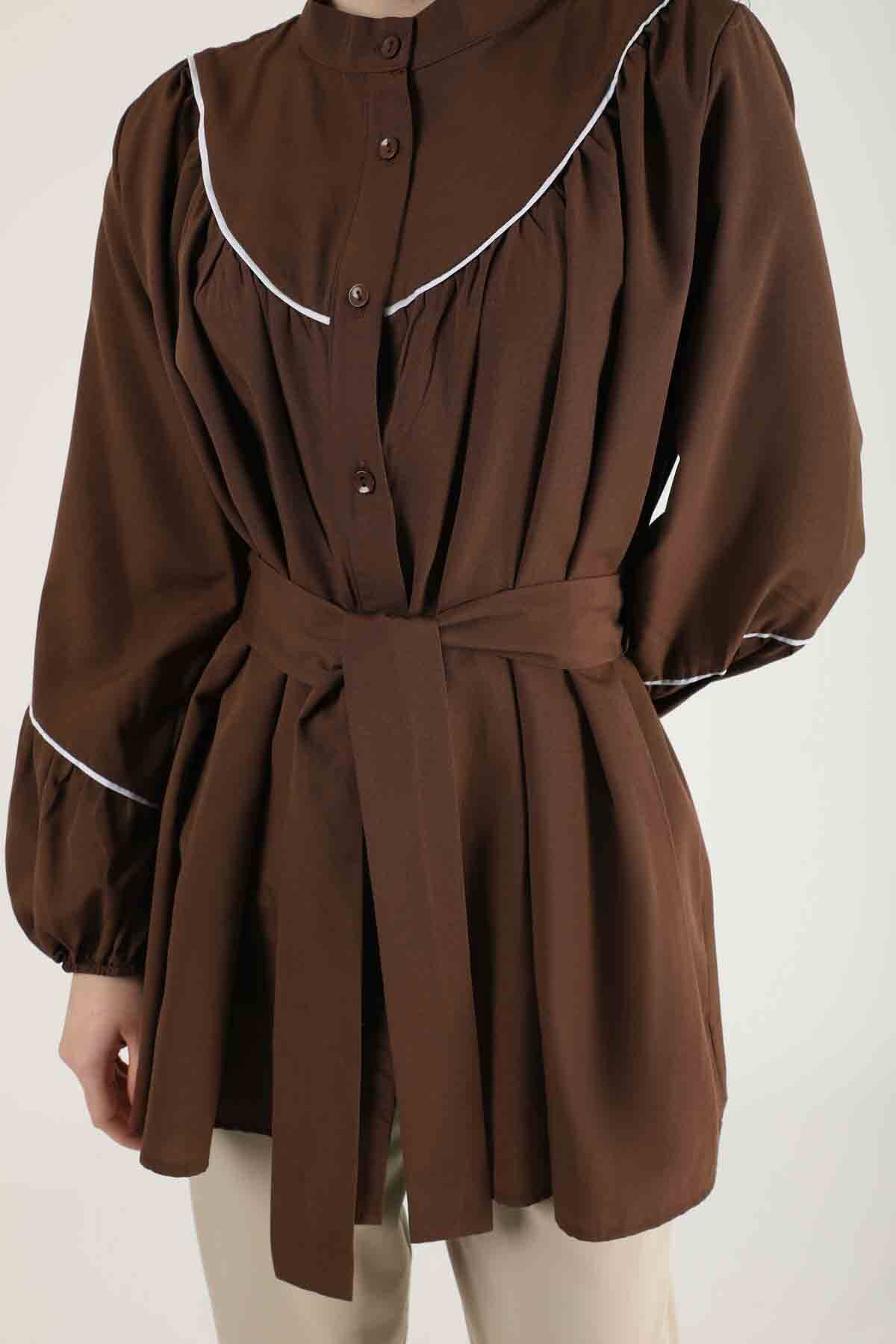 Biye Detay Kuşaklı Gömlek Kahve