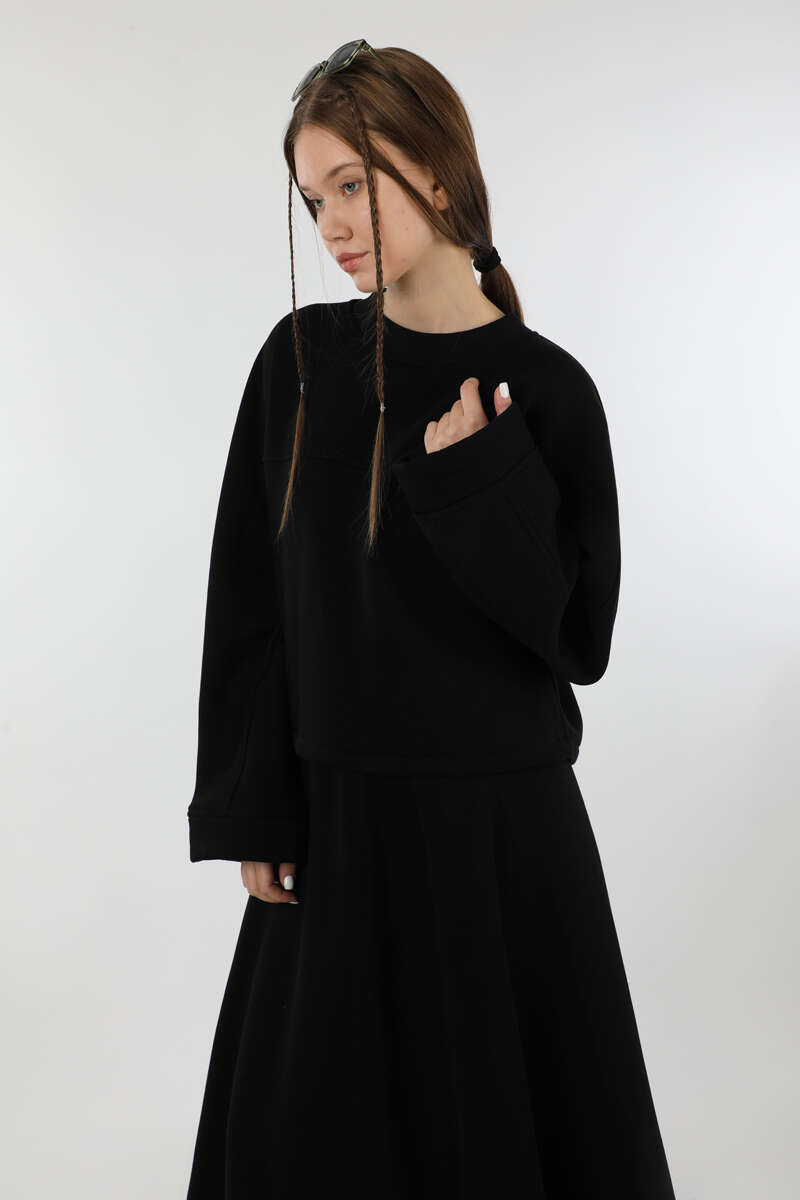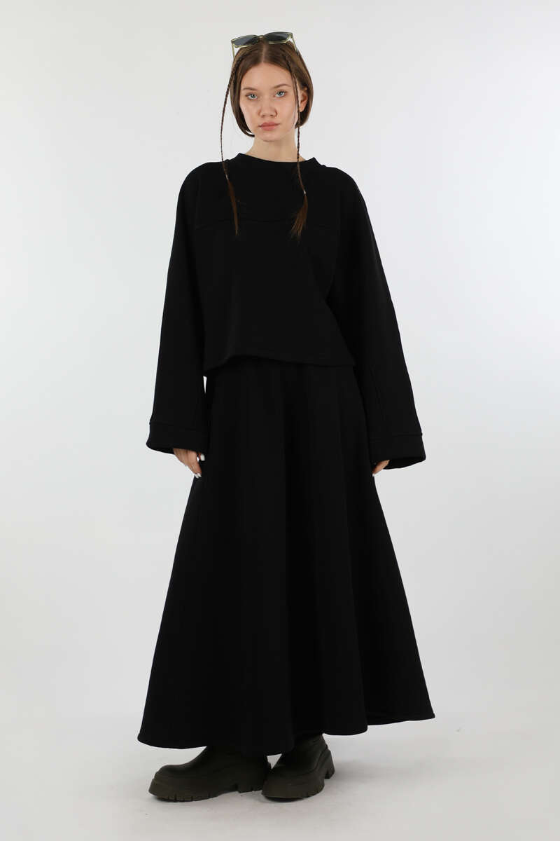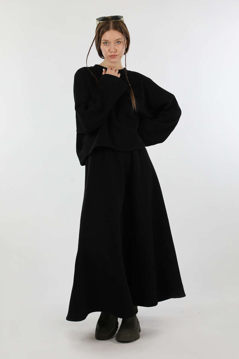 Biye Detaylı Etek Takım Siyah