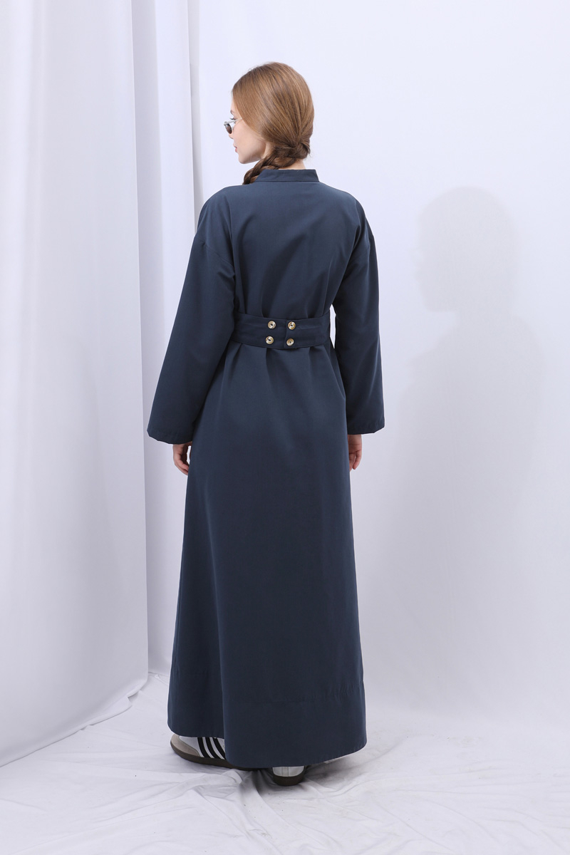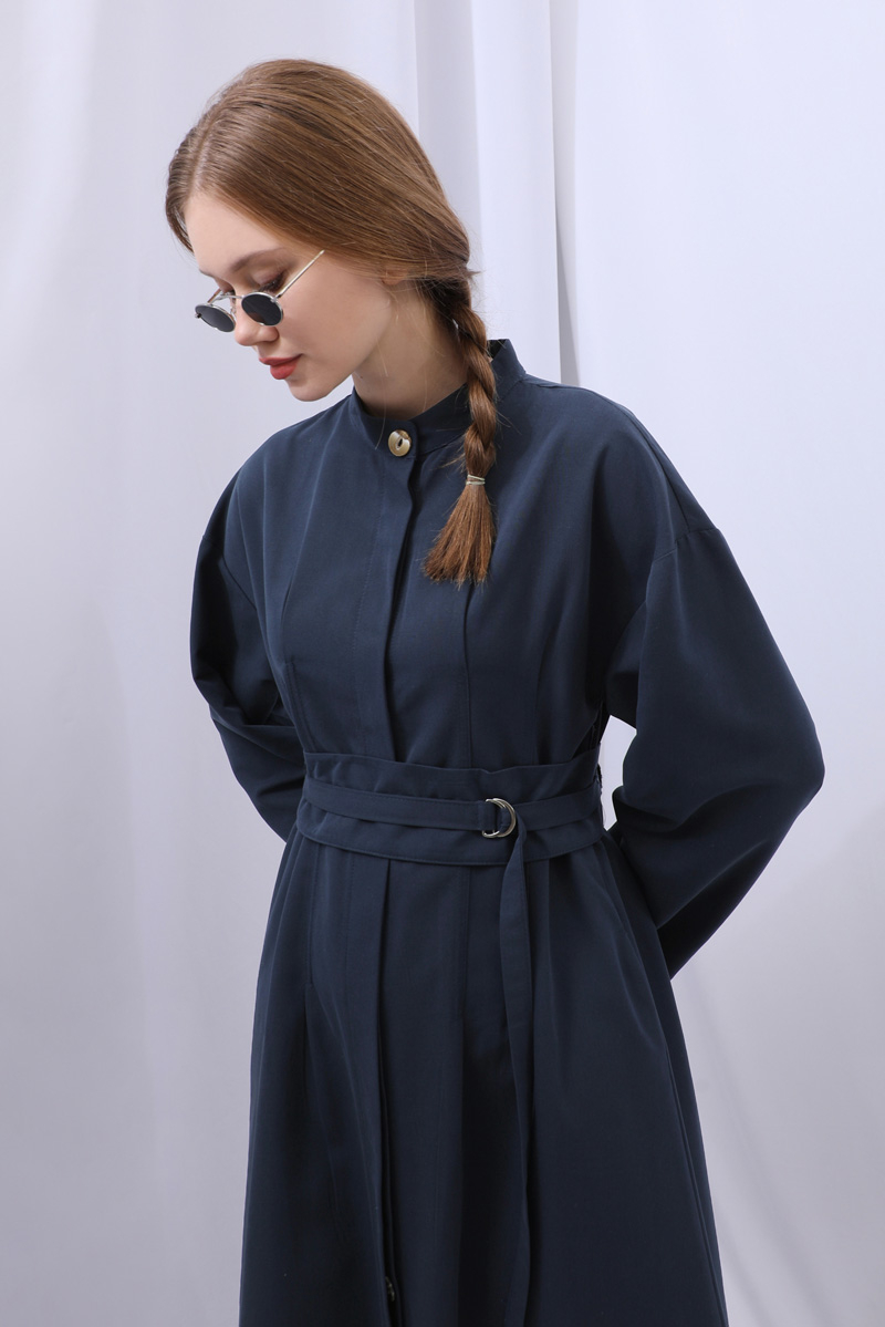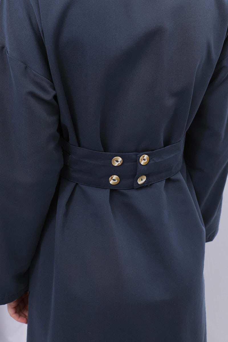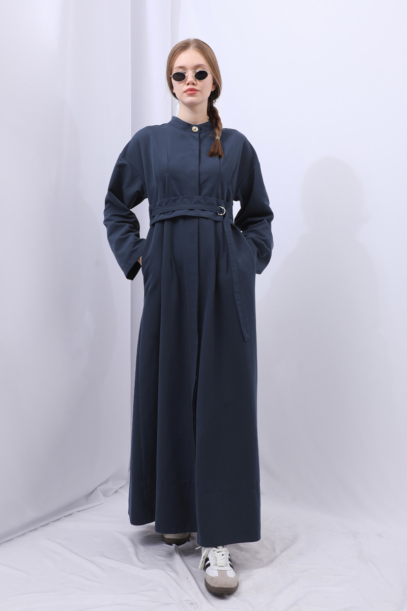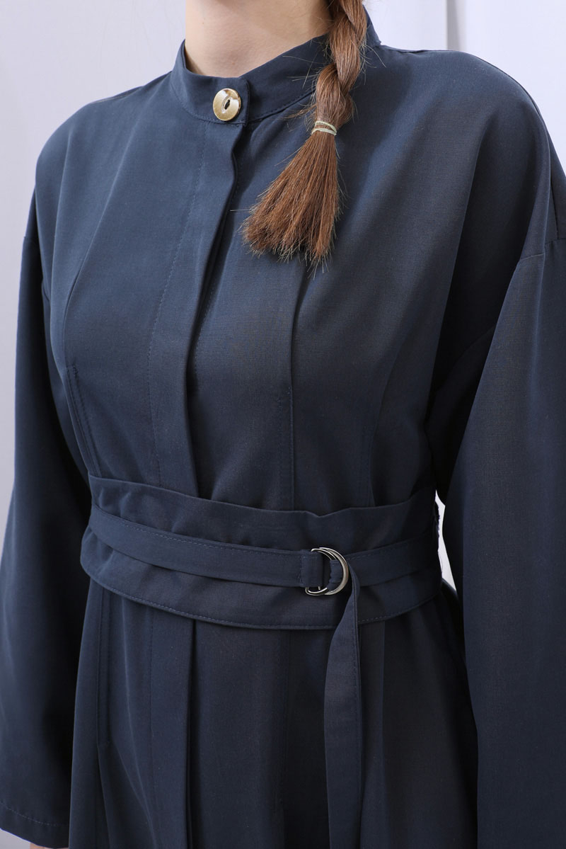 Biye Detaylı Kemerli Elbise Lacivert. Hakim yakadır, önden düğmelidir, düşük omuzludur, pens üstü süs dikişlidir, ayarlanabilir biye detaylı kemerlidir, yandan gizli ceplidir, astarsızdır. Günlük kullanım ve özel günlerinizde tercih edebilirsiniz.