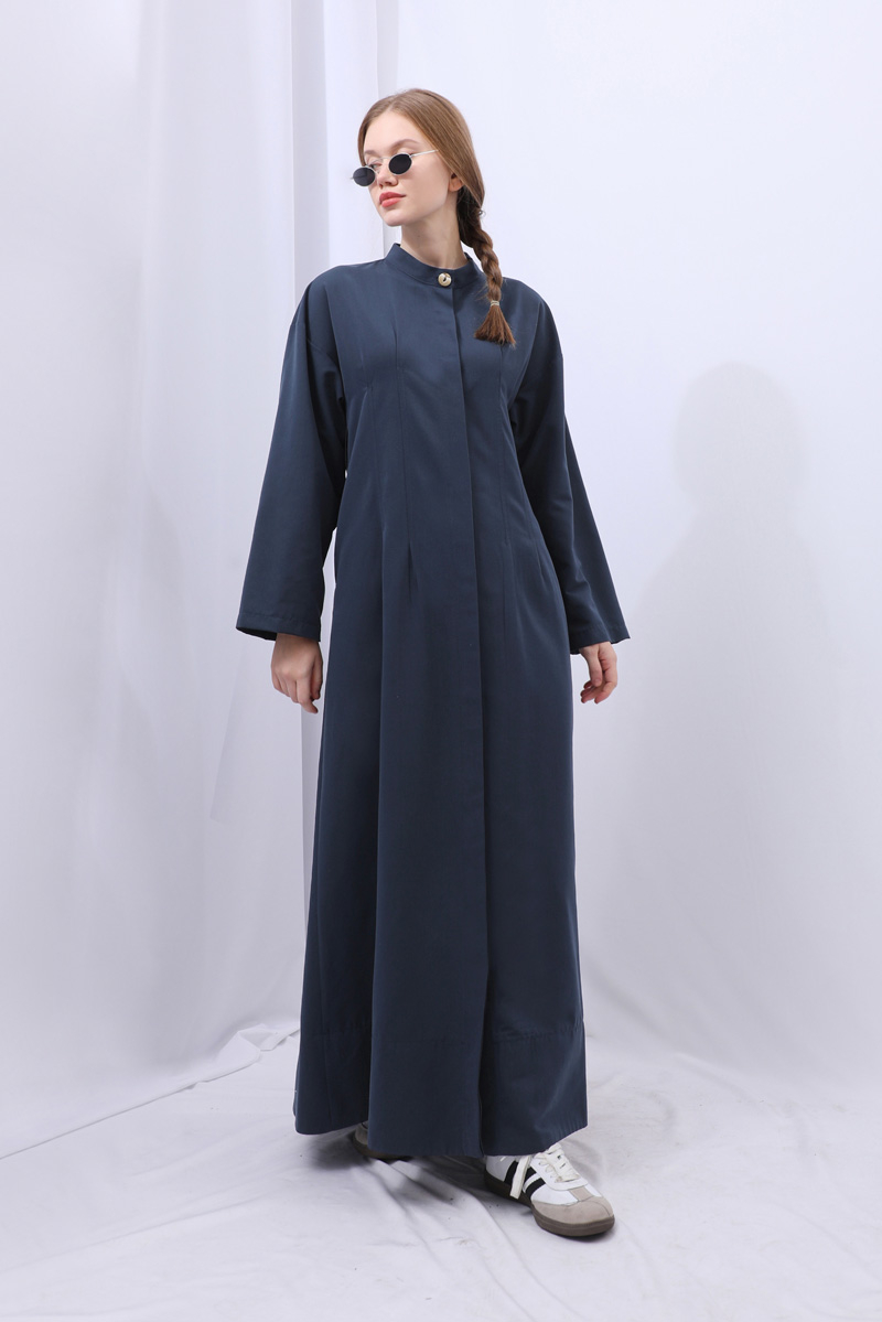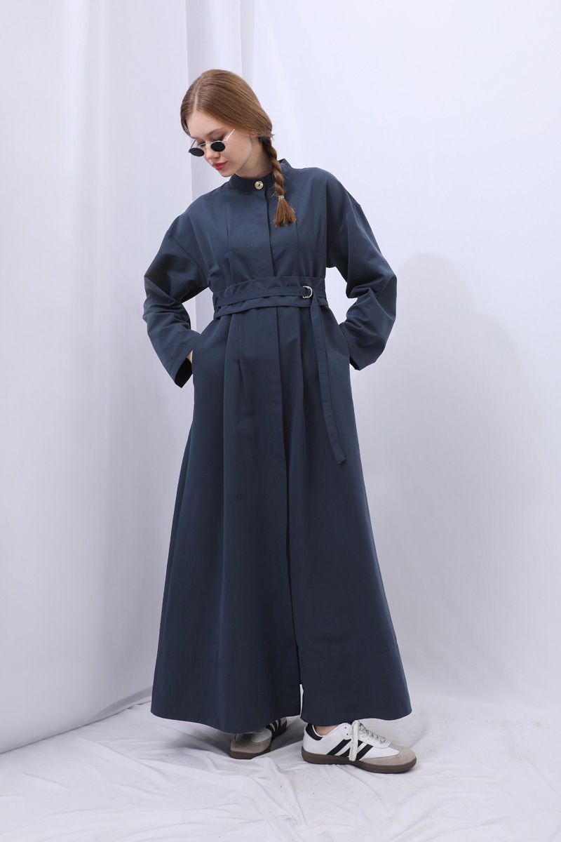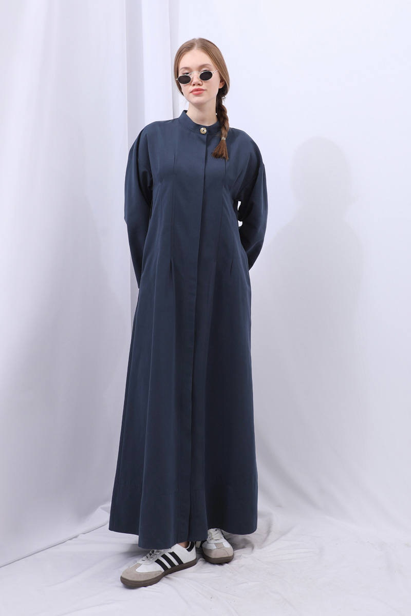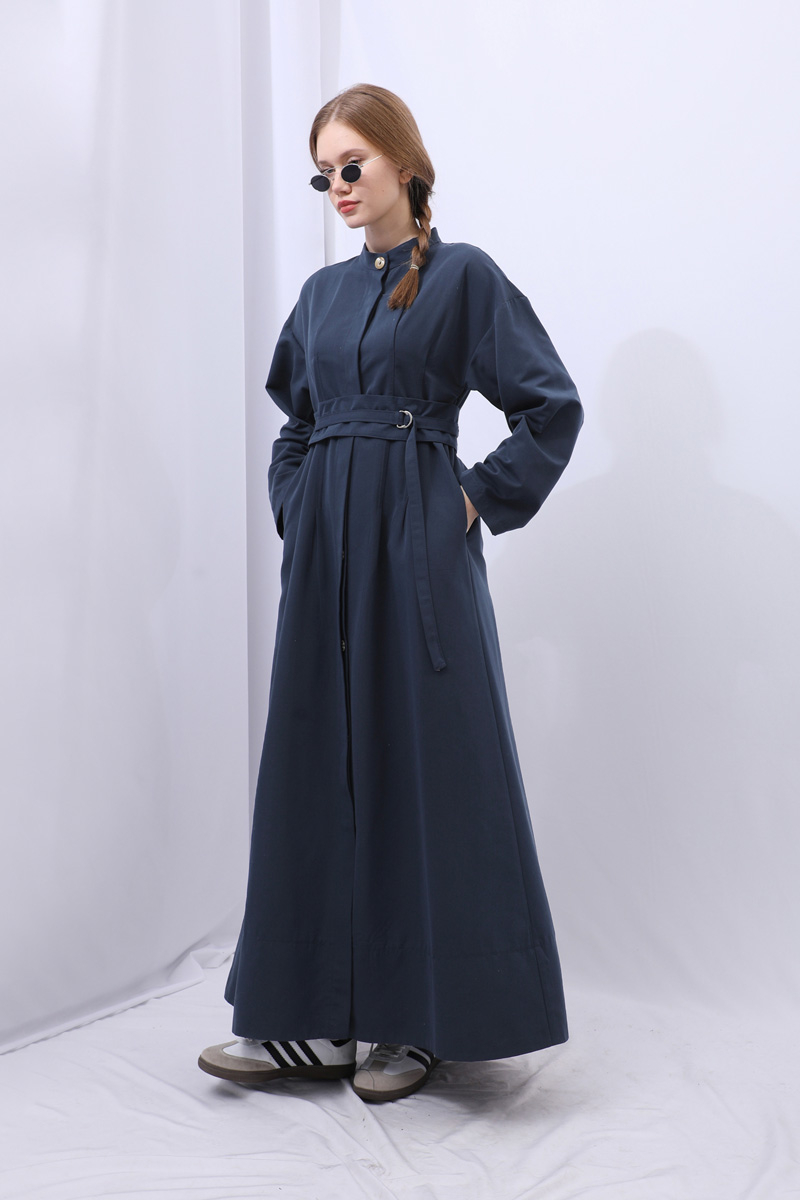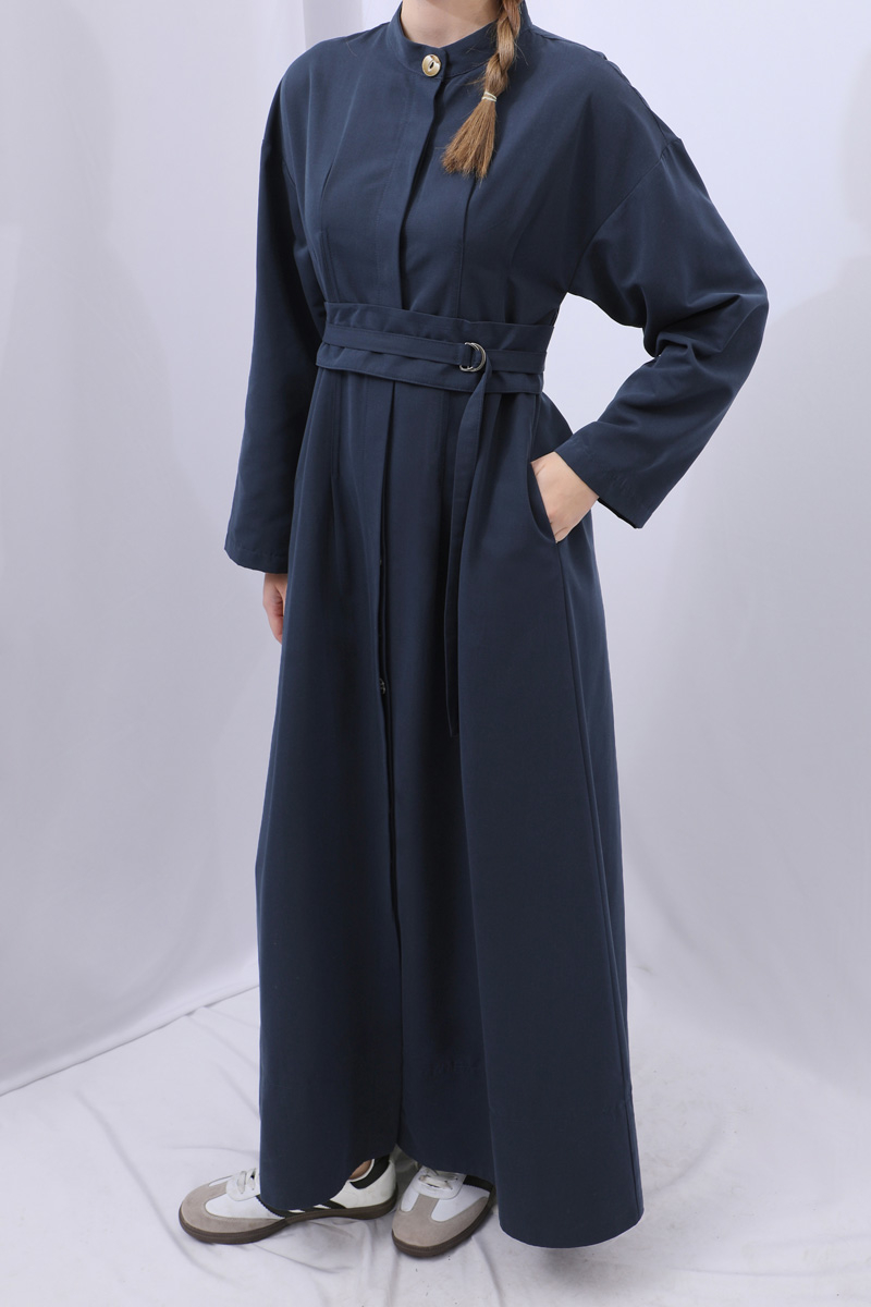 Biye Detaylı Kemerli Elbise Lacivert. Hakim yakadır, önden düğmelidir, düşük omuzludur, pens üstü süs dikişlidir, ayarlanabilir biye detaylı kemerlidir, yandan gizli ceplidir, astarsızdır. Günlük kullanım ve özel günlerinizde tercih edebilirsiniz.