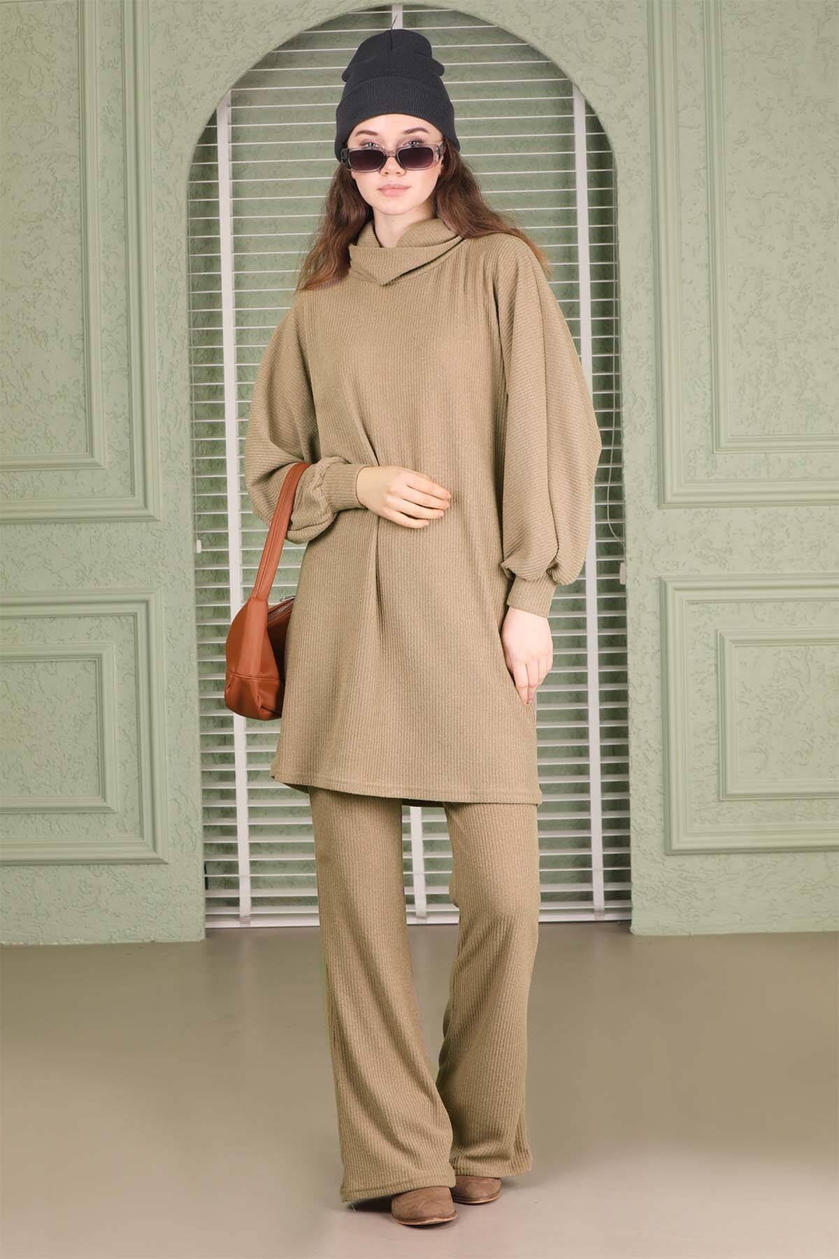 Boğazlı Triko İspanyol Takım Bej