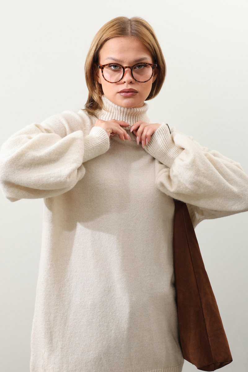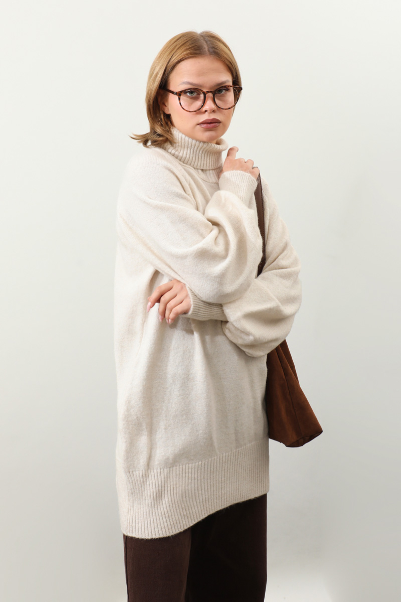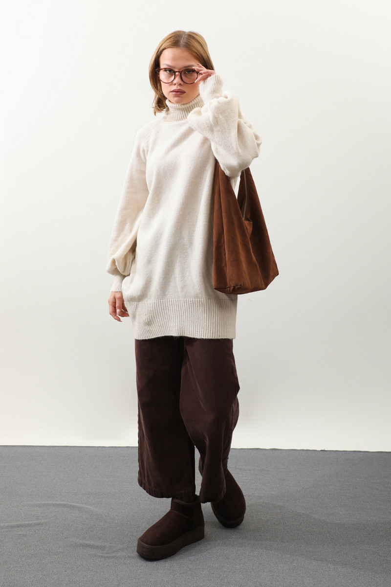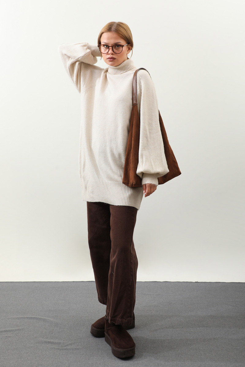 Boğazlı Tunik Kazak Taş. Balıkçı boğazlıdır, reglan kolludur, manşeti ve etek ucu ribanalıdır, dökümlü kolludur. Günlük kullanım ve özel günlerinizde tercih edebilirsiniz.