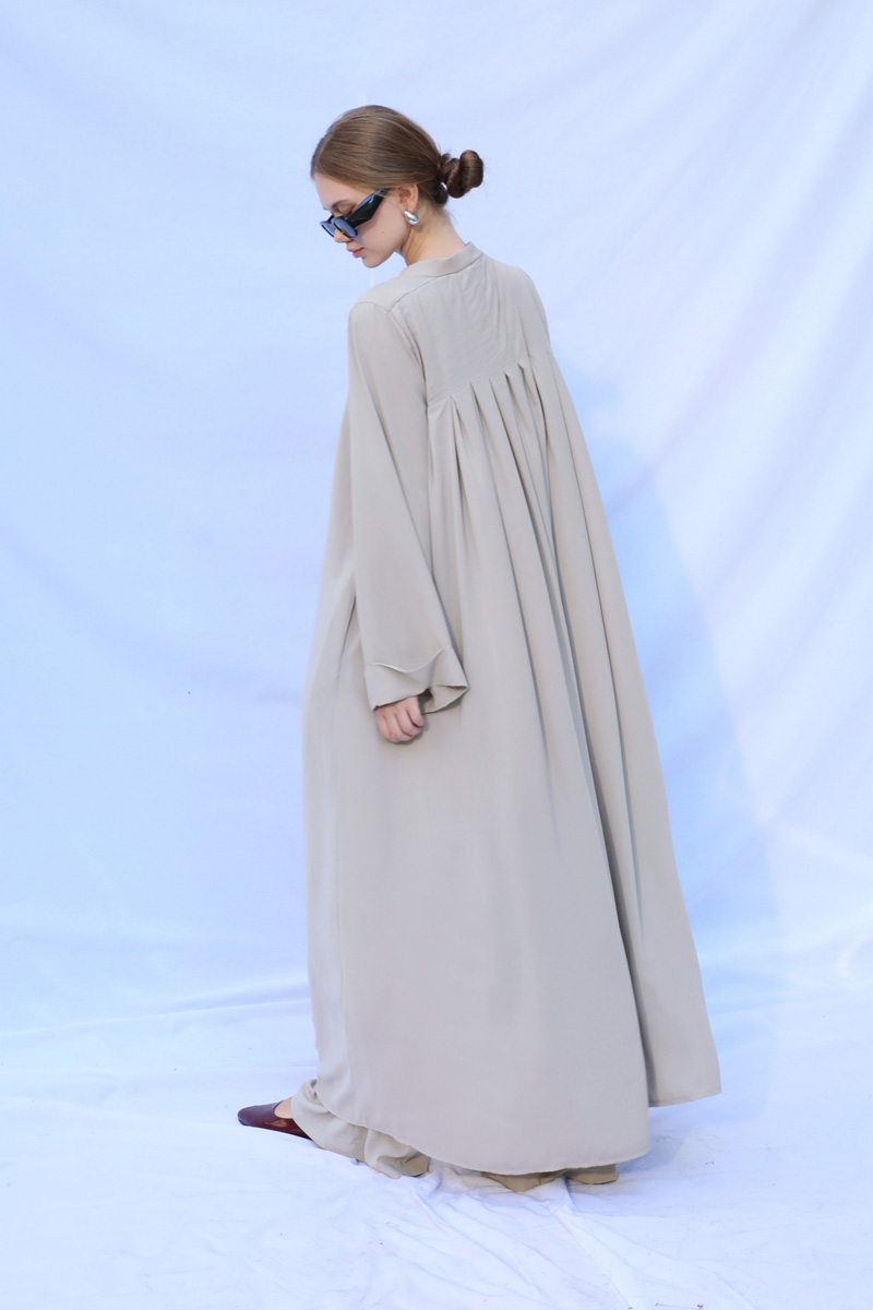 Bol Abaya Takım Taş. Abaya,Pantolon,Bluz olmak üzere 3'lü takım olarak satılmaktadır. Duble koldur. Kuşaklıdır. Arkası pilelidir. Pantolon yandan ceplidir, yandan fermuarlıdır, arkadan lastiklidir, önden pilelidir, geniş paçalıdır, astarsızdır. Bluz arkadan fermuarlıdır, Dik yakalıdır, Sıfır koldur. Günlük ve özel günlerde kullanıma uygundur.