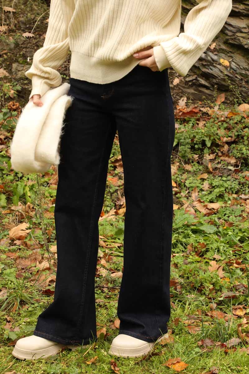 Bol Paça Denim Pantolon Koyu Lacivert. Yüksel beldir, bol paçadır, düğmeli ve fermuarlıdır, arka ve önden ceplidir, geniş paçadır. Günlük kullanım ve özel günlerinizde tercih edebilirsiniz.