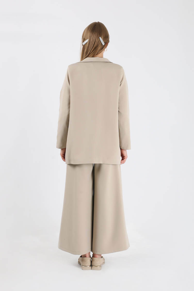 Bol Paça Pantolon Ceket Takım Taş. Ceket astarlıdır. Pantolon arkadan lastiklidir, Ceplidir, Bol paçadır, Düğmelidir. Günlük kullanım ve özel günlerinizde tercih edebilirsiniz.