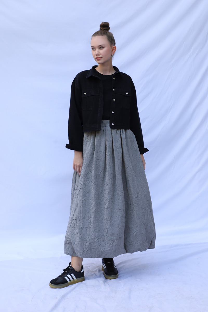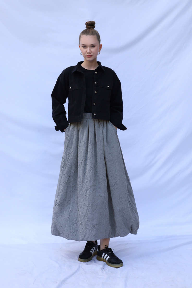 Balon Etek Gri. Etek ucu astarla tulumludur. Etek beli lastiklidir. Yandan ceplidir. Astarlıdır. Günlük kullanım ve özel günlerinizde tercih edebilirsiniz.