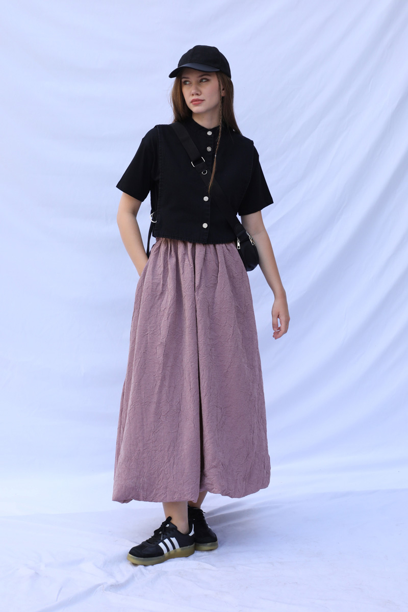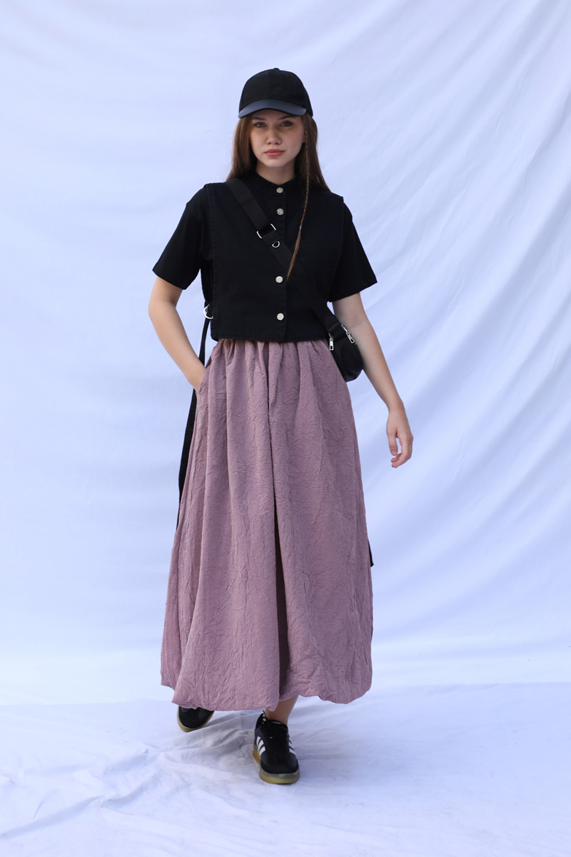 Balon Etek Gül Kurusu. Etek ucu astarla tulumludur. Etek beli lastiklidir. Yandan ceplidir. Astarlıdır. Günlük kullanım ve özel günlerinizde tercih edebilirsiniz.