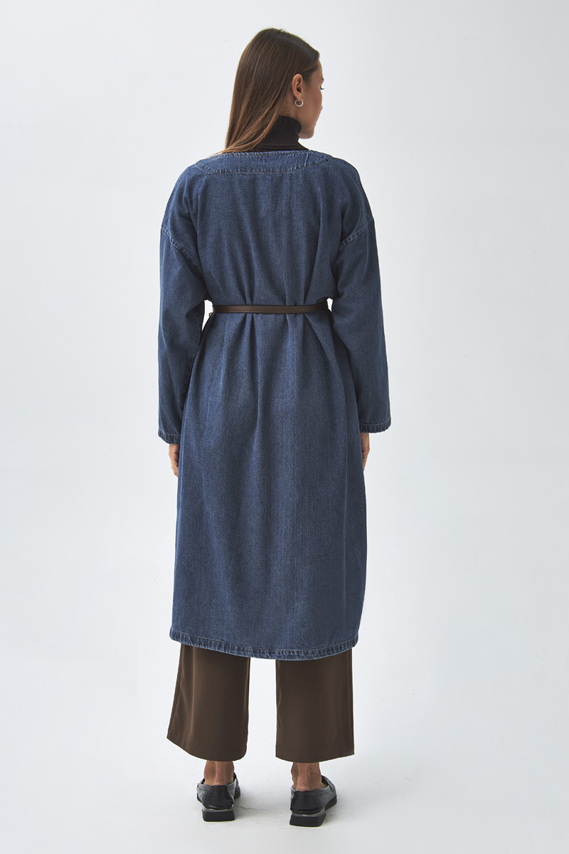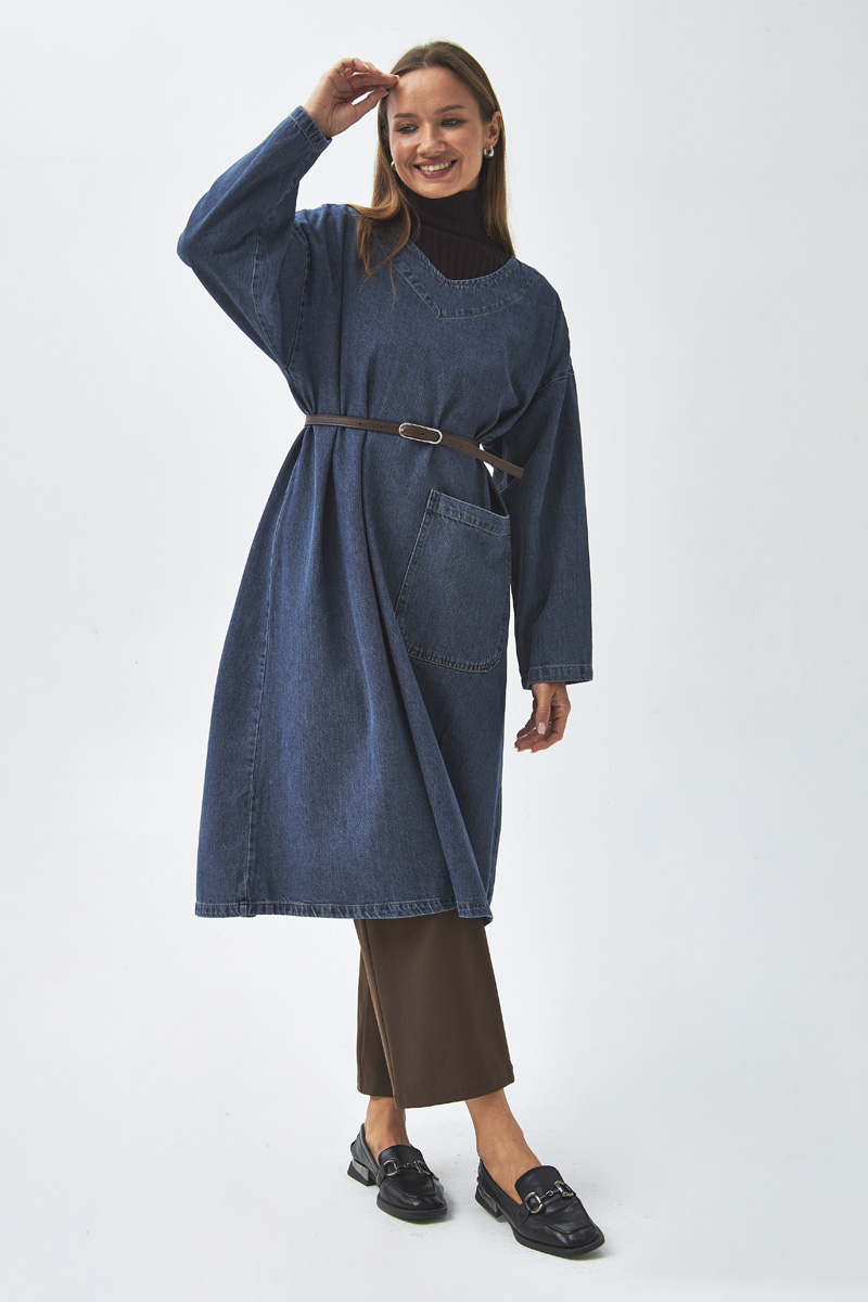 Büyük Cepli Denim Tunik Koyu Mavi