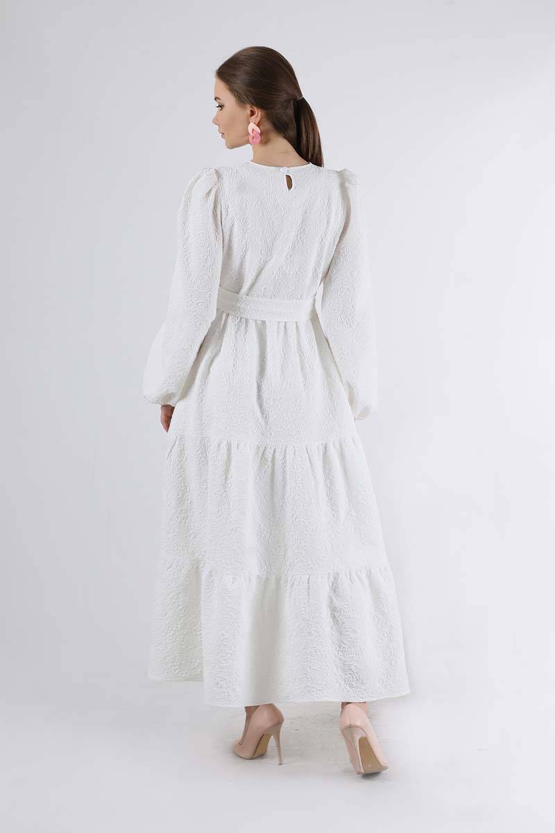 Büzgü Detaylı Elbise Ekru