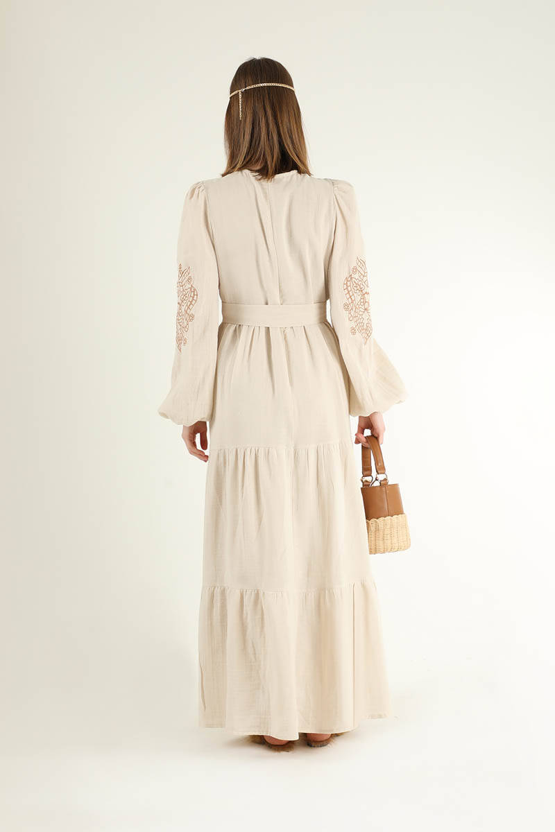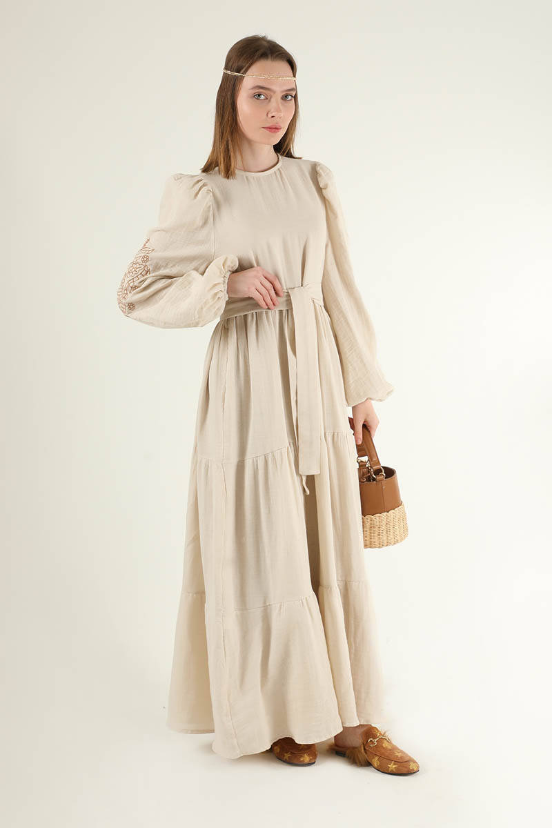 Büzgü Detaylı Kuşaklı Elbise Taş. Nakış Detaylıdır. Omuz tepesi büzgülüdür. Kuşaklıdır. Manşeti büzgülüdür. Arkadan fermuarlıdır. Astarsızdır ( İç göstermez). Normal kalıptır. Günlük kullanım ve Özel günlerinizde tercih edebilirsiniz.