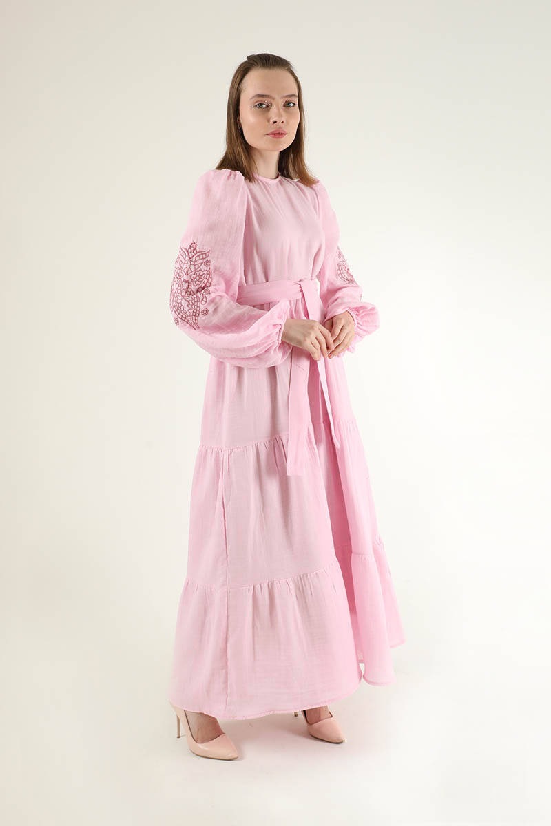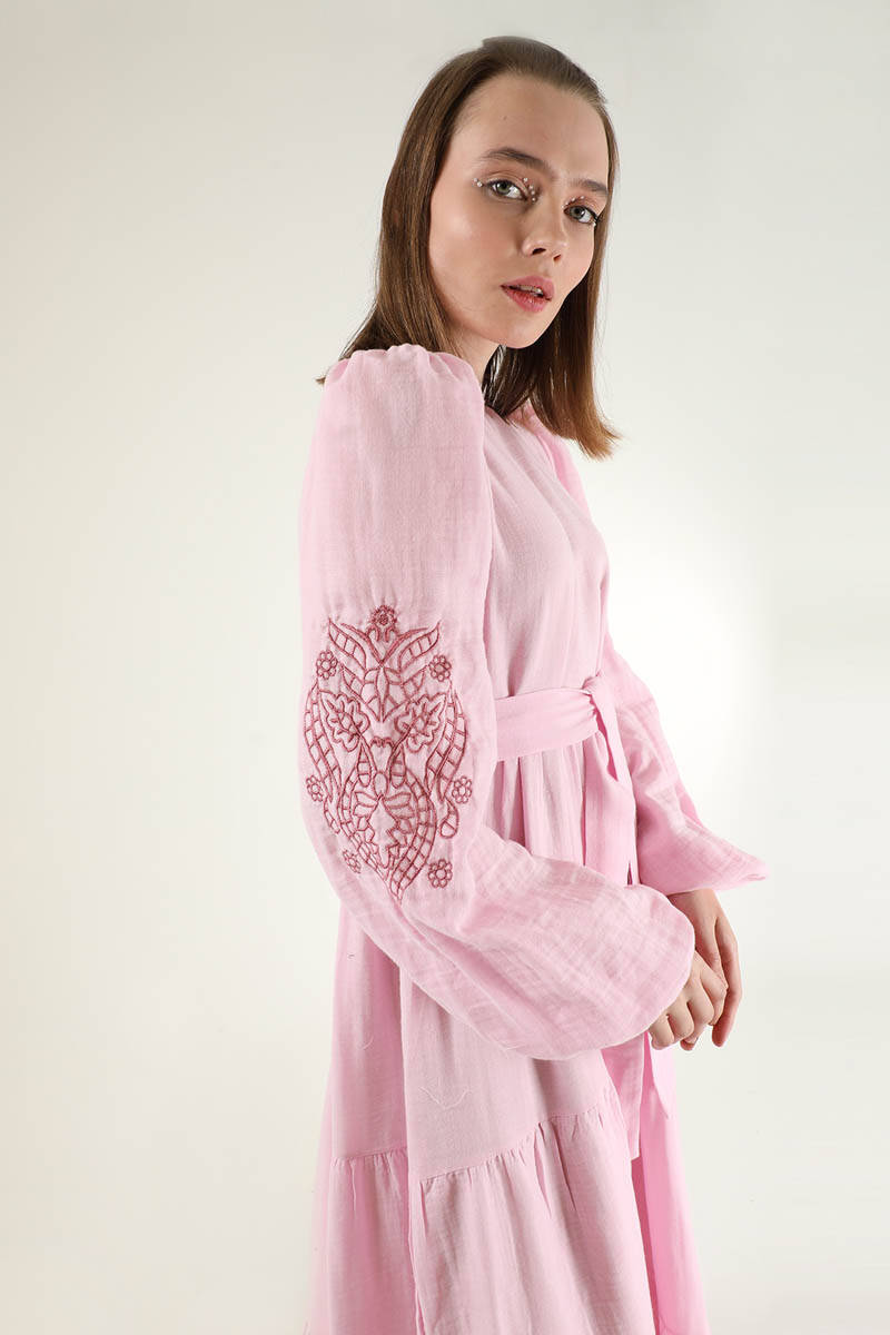 Büzgü Detaylı Kuşaklı Elbise Pembe. Nakış Detaylıdır. Omuz tepesi büzgülüdür. Kuşaklıdır. Manşeti büzgülüdür. Arkadan fermuarlıdır. Astarsızdır ( İç göstermez). Normal kalıptır. Günlük kullanım ve Özel günlerinizde tercih edebilirsiniz.