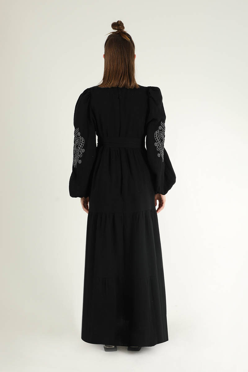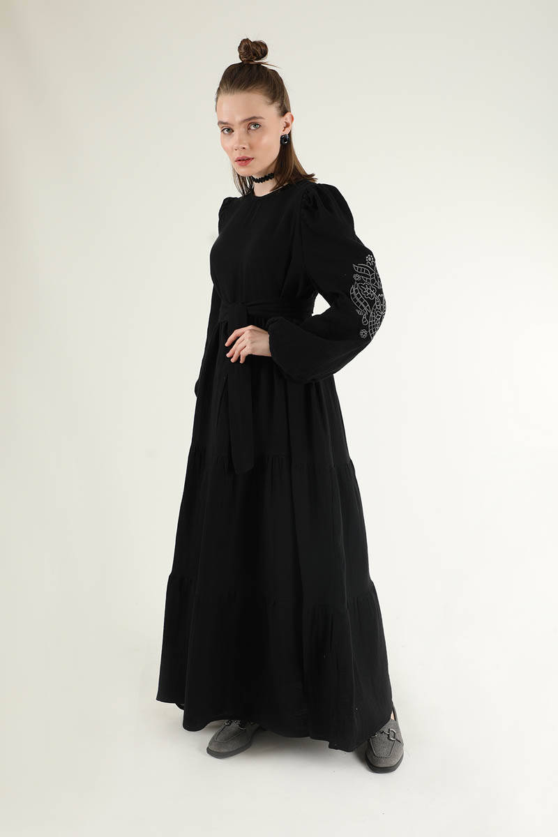 Büzgü Detaylı Kuşaklı Elbise Siyah. Nakış Detaylıdır. Omuz tepesi büzgülüdür. Kuşaklıdır. Manşeti büzgülüdür. Arkadan fermuarlıdır. Astarsızdır ( İç göstermez). Normal kalıptır. Günlük kullanım ve Özel günlerinizde tercih edebilirsiniz.