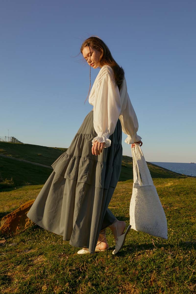 Büzgü Parça Detaylı Etek Haki, Doğal ve zarif görünümüyle öne çıkan bu kat kat volanlı etekyüksek bel tasarımı ve dökümlü yapısıyla gün boyu konfor sunar. Hafif ve nefes alabilen kumaşı sayesinde yaz ve bahar aylarında ideal kullanım sağlar.