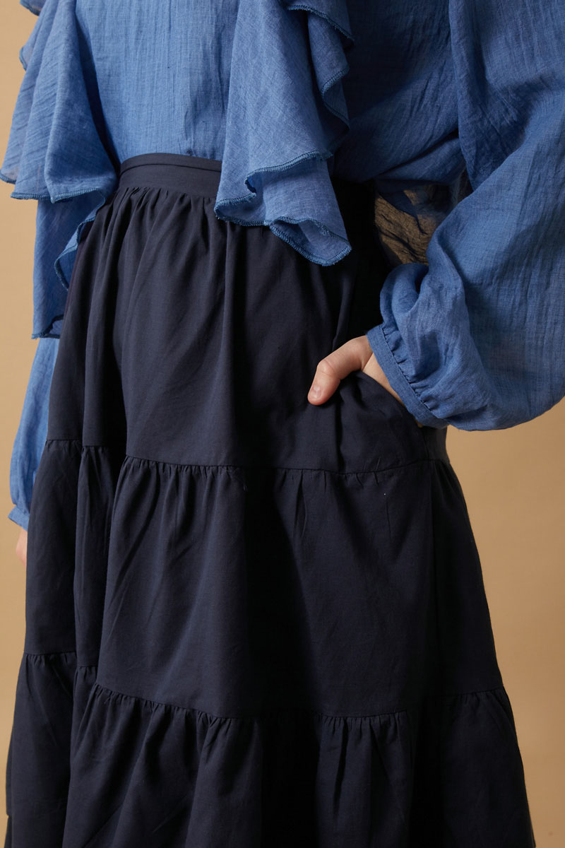 Büzgü Parça Detaylı Etek Lacivert