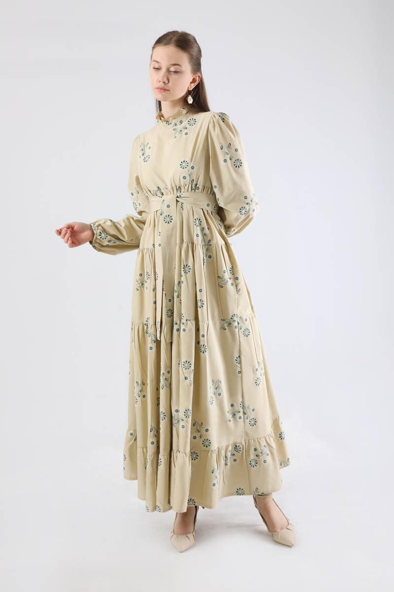 Büzgülü Desenli Poplin Elbise Taş. Fırfır yakalıdır. Omuz tepesi büzgülüdür. Belden kesik detaylıdır. Manşeti lastiklidir. Arkadan fermuarlıdır. Kuşaklıdır. Astarsızdır. Günlük kullanım ve özel günlerinizde tercih edebilirsiniz.