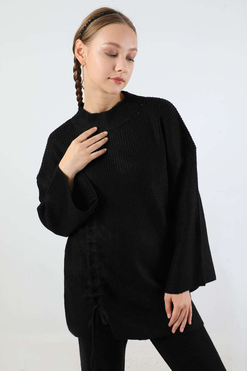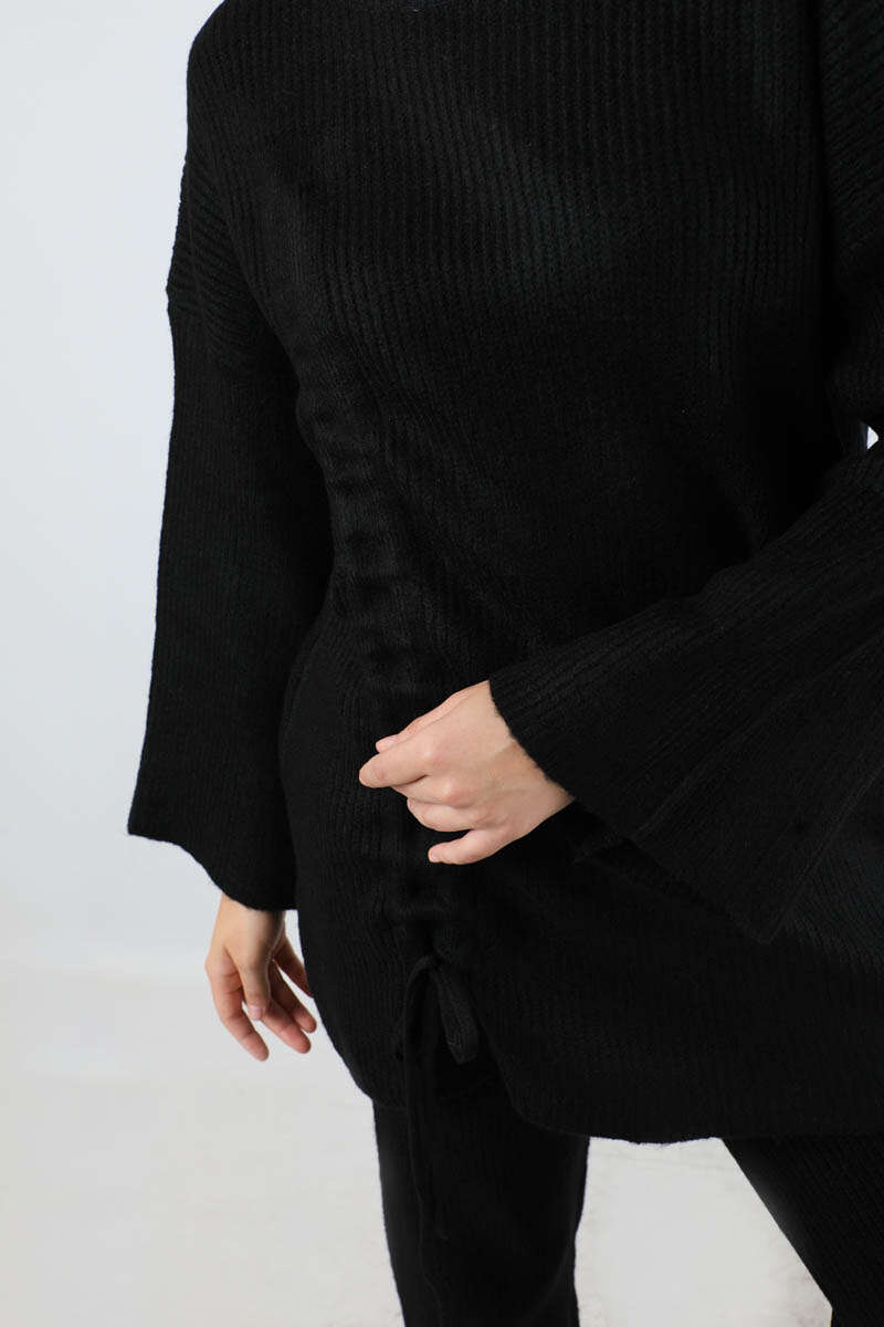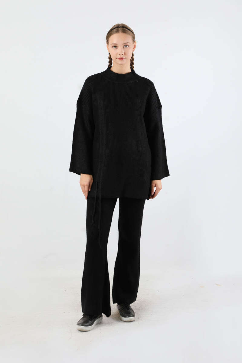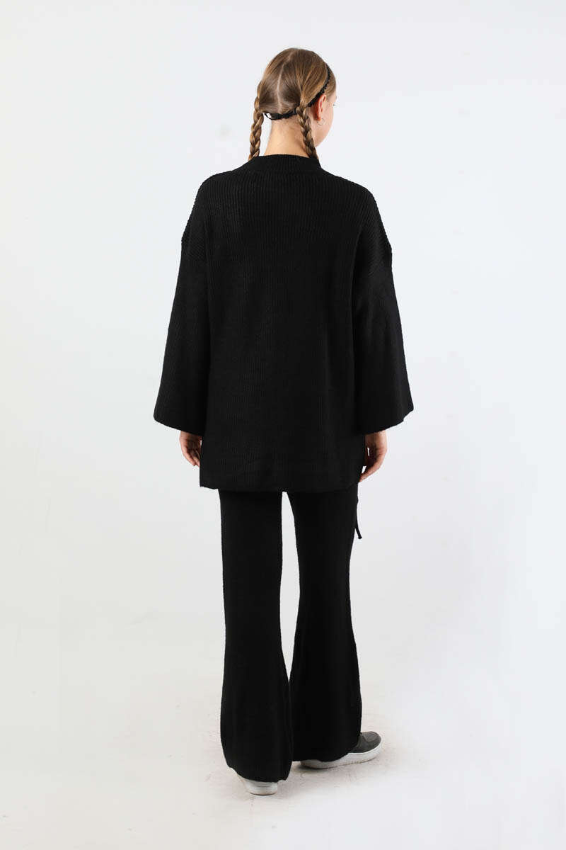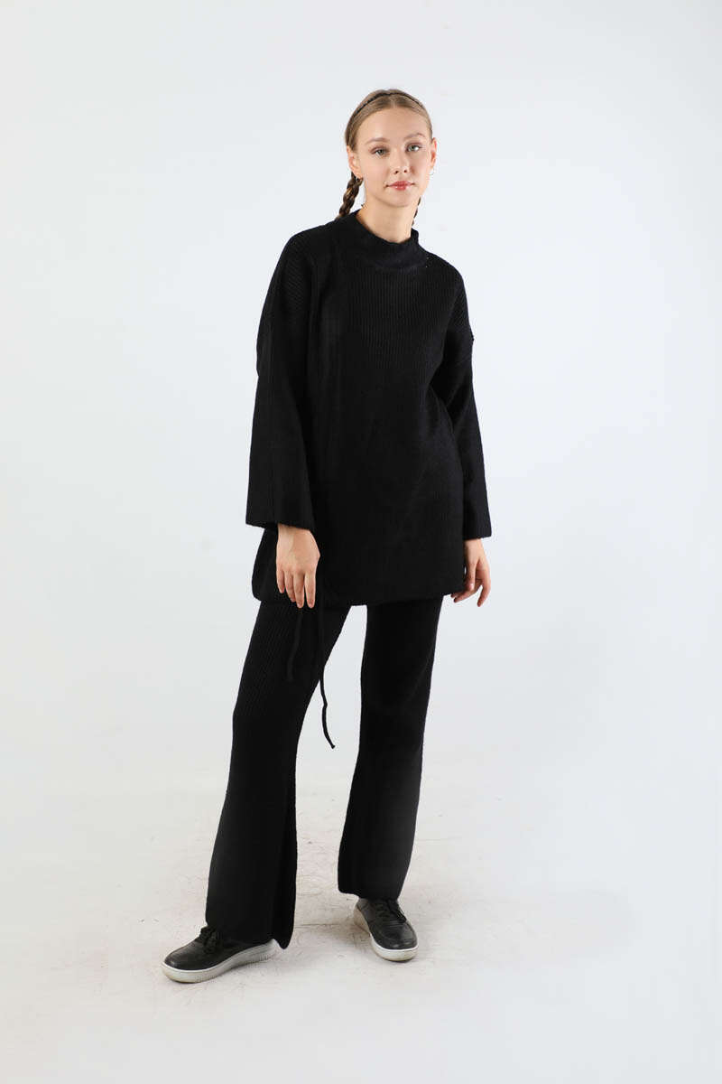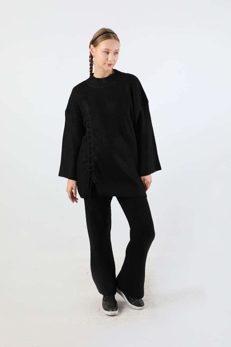 Büzgülü İspanyol Paça Triko Takım Siyah