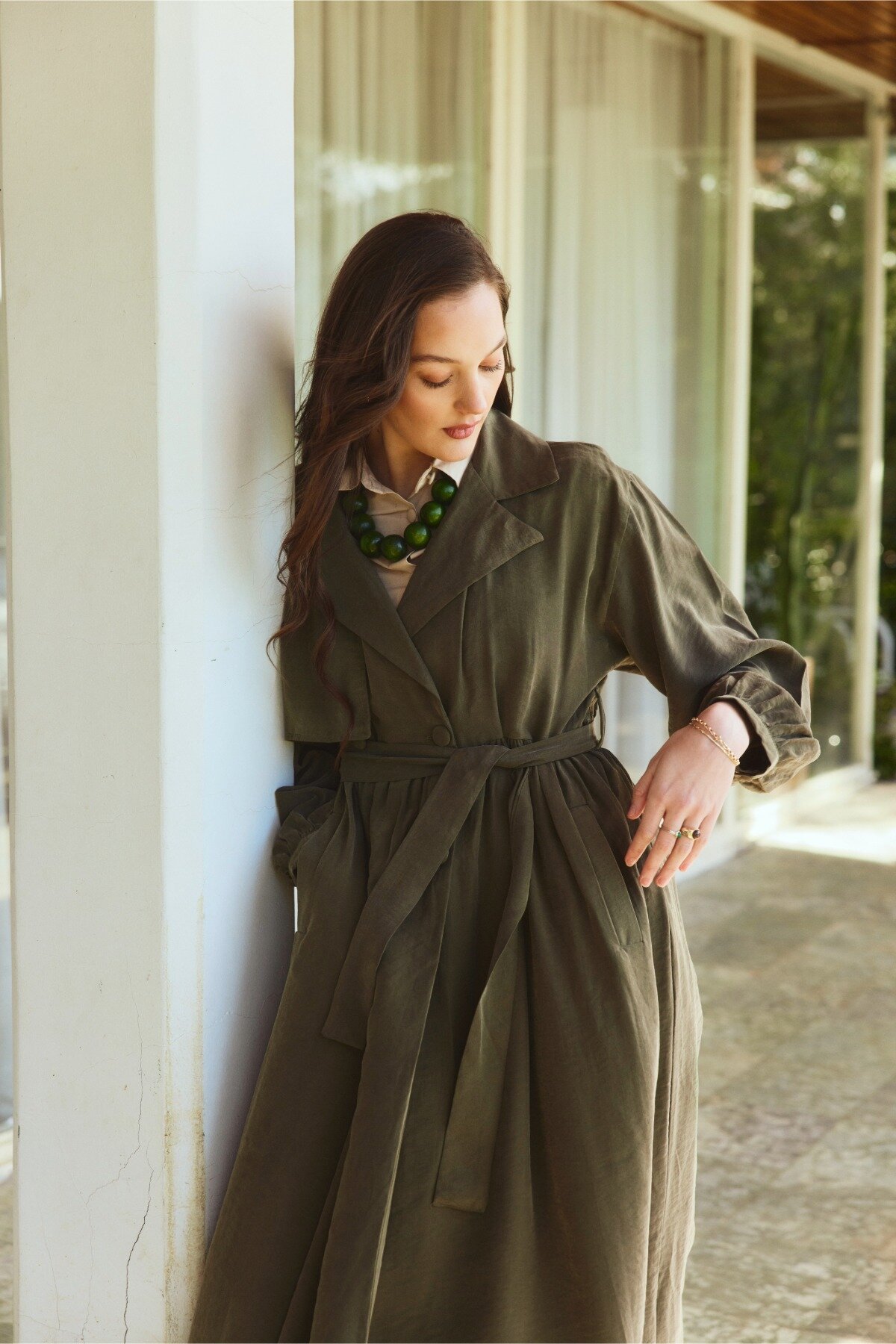 Büzgülü Modal Trençkot Haki