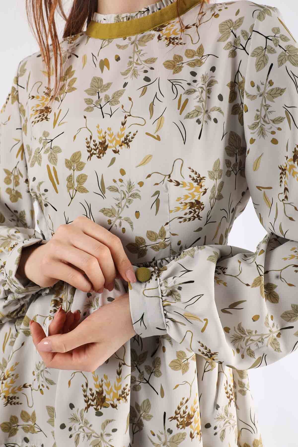 Bluzu Baskılı Etekli Takım Yağ Yeşili