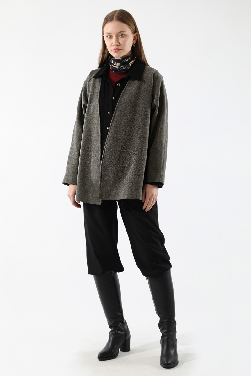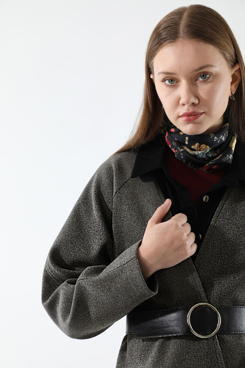 Cachet Short Jacket Anthracite. No button. Portable belt. Side pockets. Lined.
